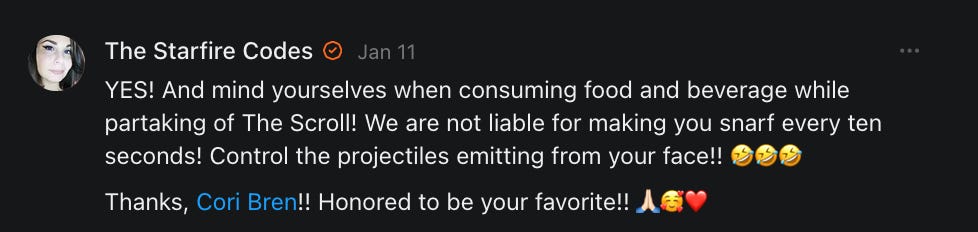 THE SCROLL is a free-form multimedia stream of consciousness digest of interesting, informative, educational, and otherwise amusing posts and conversations from across Substack and amongst Substack writers and readers, carefully curated by the author.