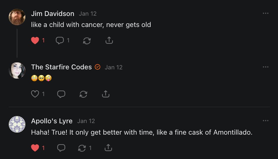 We hope that you will not only find the information herein useful, educational, and amusing, but that you will also reach out to each other by liking, subscribing, and contributing to each other’s posts, Notes, and work in general.