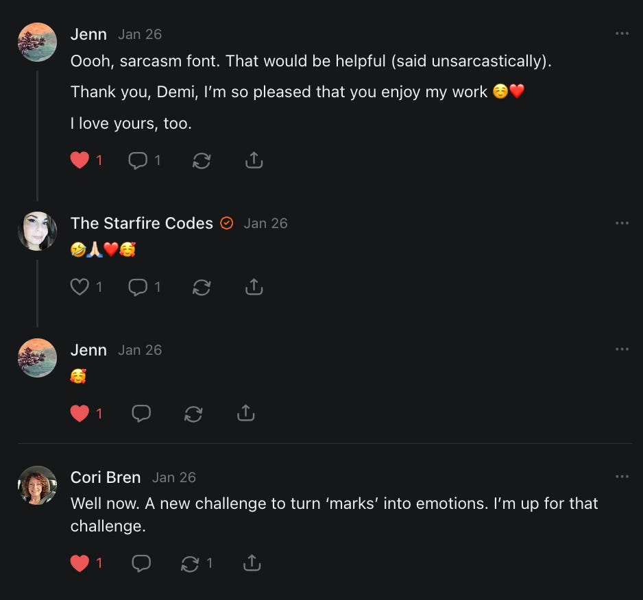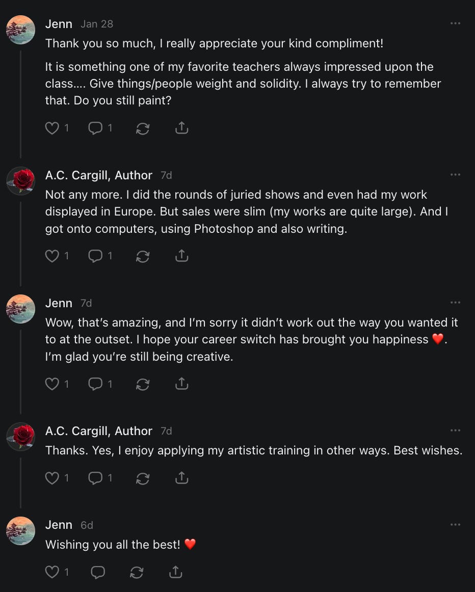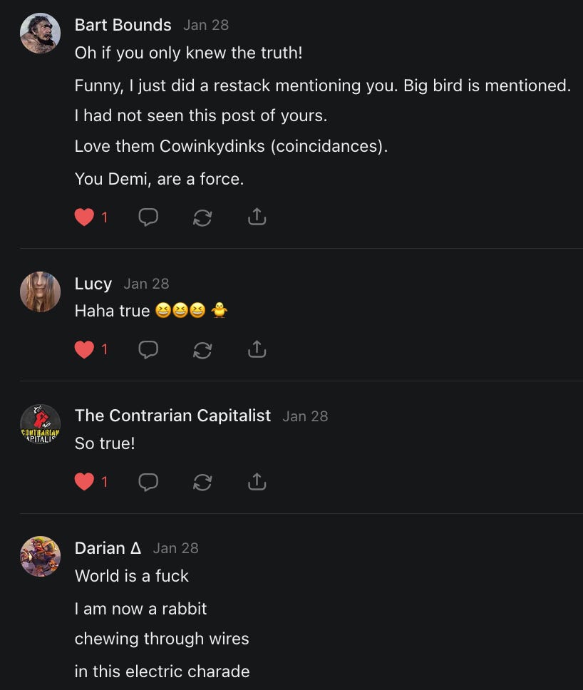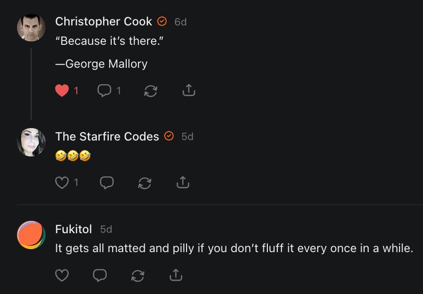 We hope that you will not only find the information herein useful, educational, and amusing, but that you will also reach out to each other by liking, subscribing, and contributing to each other’s posts, Notes, and work in general.