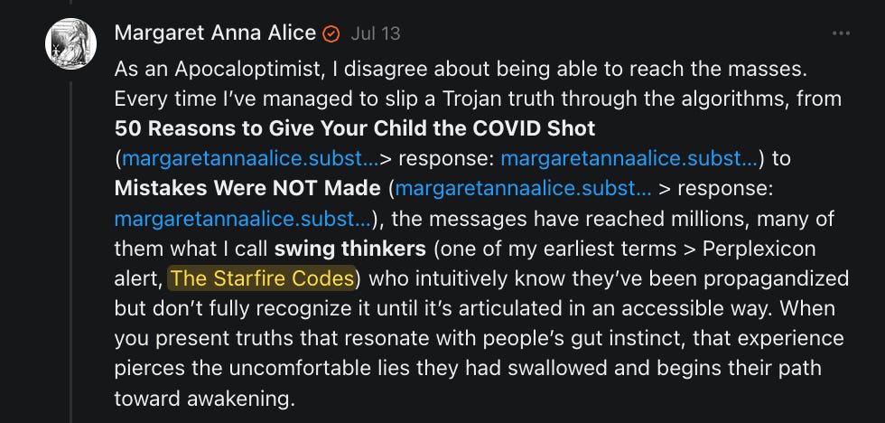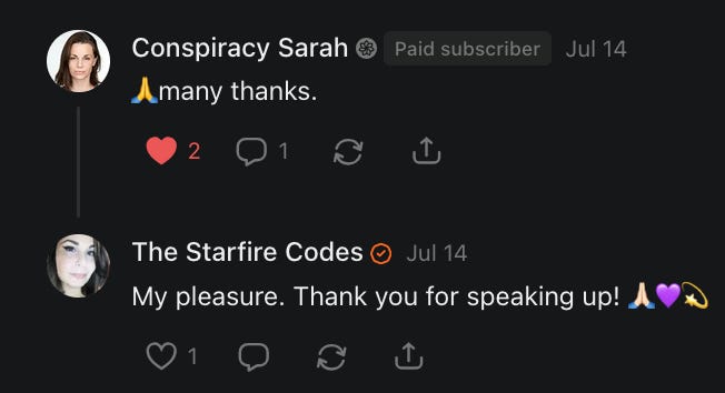 The Starfire Codes produces an audience-supported publication with a stellar podcast, consciousness-expanding daily spiritual content, and well-researched articles on forbidden but crucial topics.
