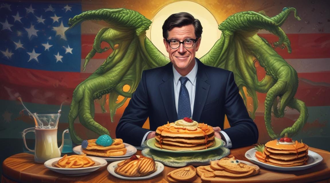 “Isn’t it funny how Colbert’s courage seems to only manifest in defense of Party-approved narratives? And I don’t mean funny like ‘haha;”’I mean funny like Colbert.”