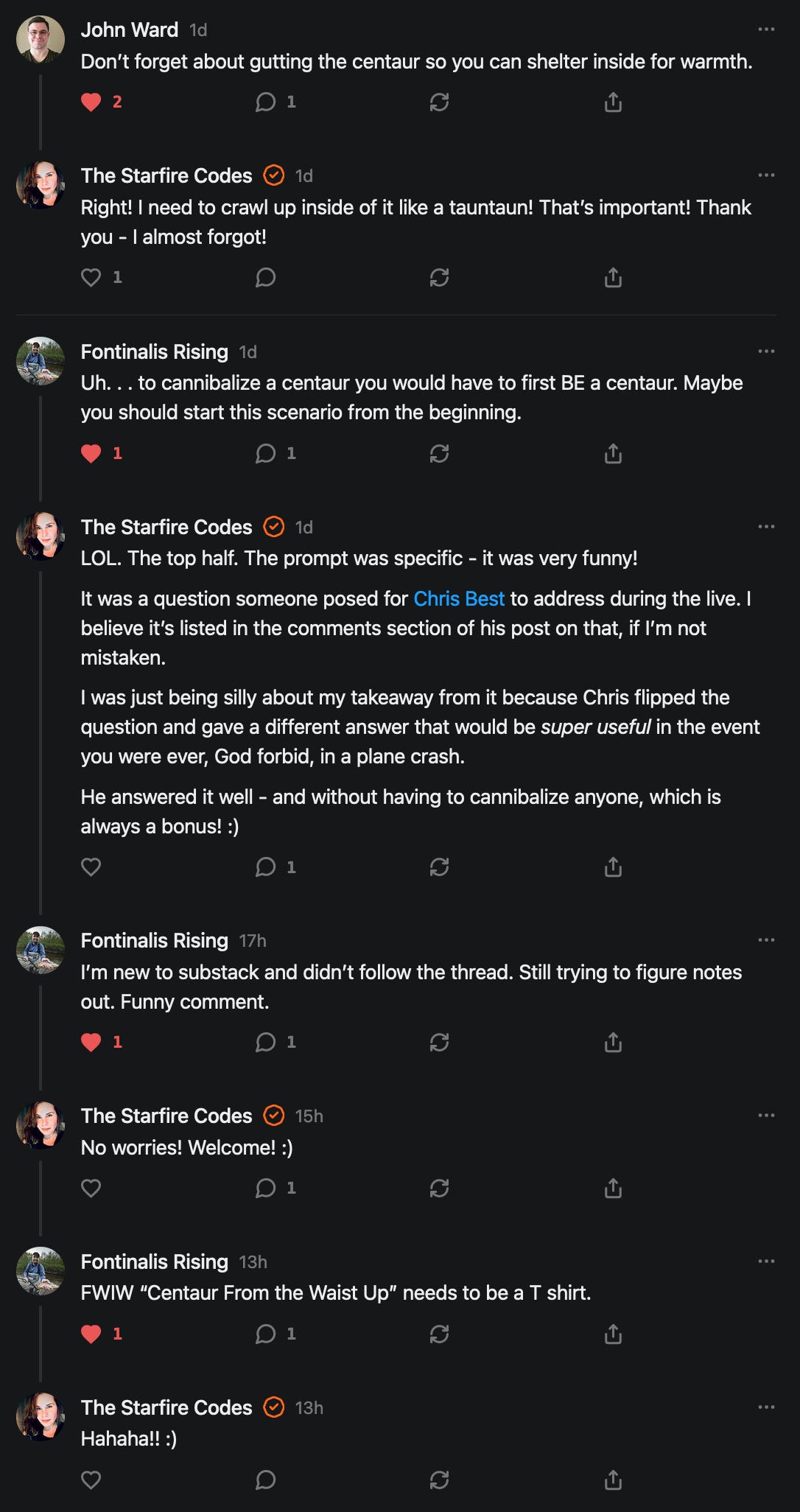 TIL the last thing I need to worry about in a plane crash is cannibalizing dead centaurs.