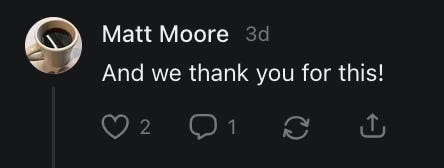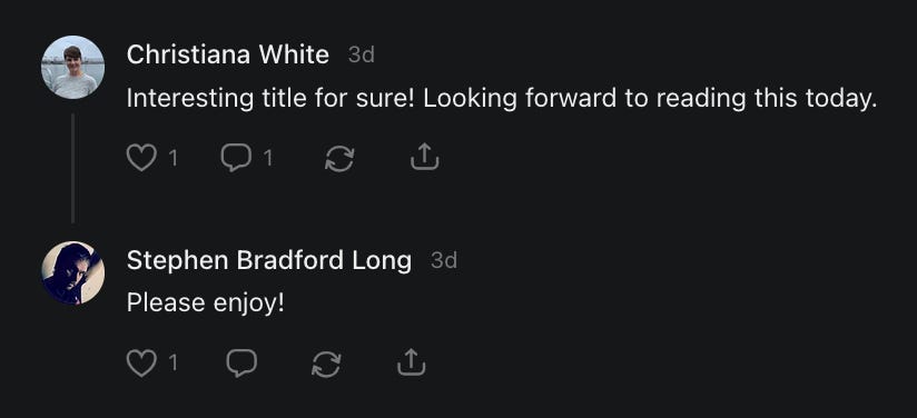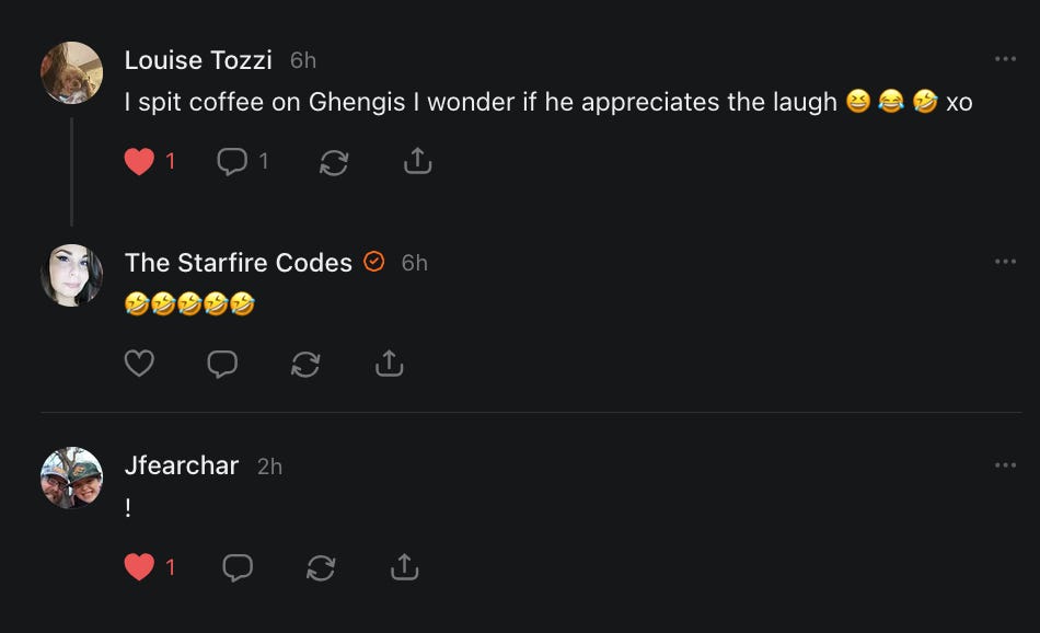 We hope that you will not only find the information herein useful, educational, and amusing, but that you will also reach out to each other by liking, subscribing, and contributing to each other’s posts, Notes, and work in general.
