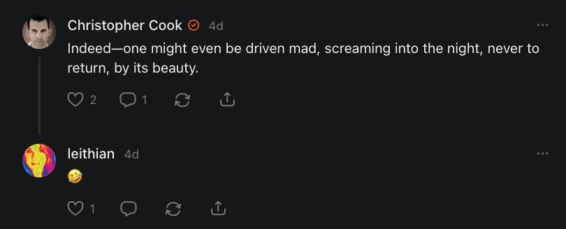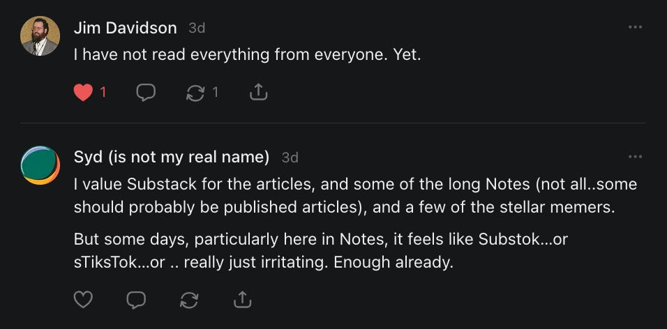 THE SCROLL is a free-form multimedia stream of consciousness digest of interesting, informative, educational, and otherwise amusing posts and conversations from across Substack and amongst Substack writers and readers, carefully curated by the author.