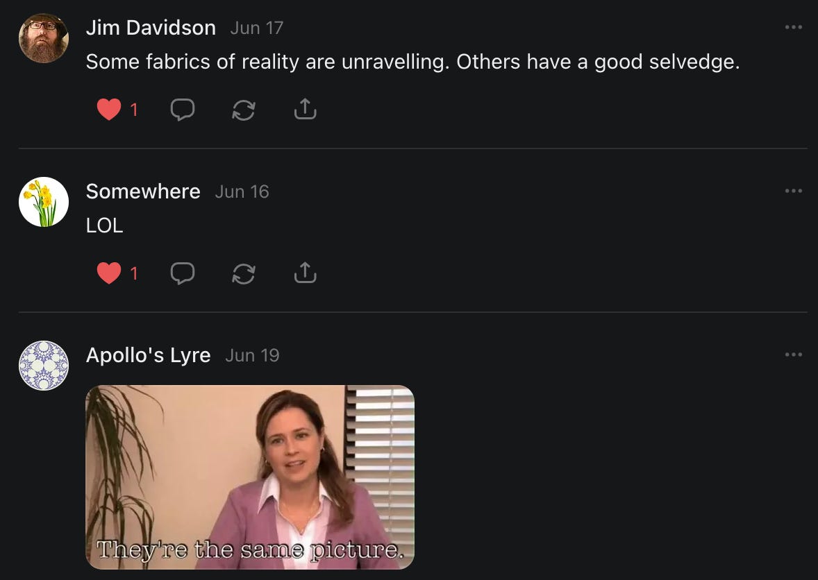 THE SCROLL exists to serve our community by creating an additional method for discovery and interaction. This whimsical and Lynchian collection of interesting exchanges is laid out with all the links and tags required for maximum readability in an effort to highlight some of the best conversations that are happening throughout our community.