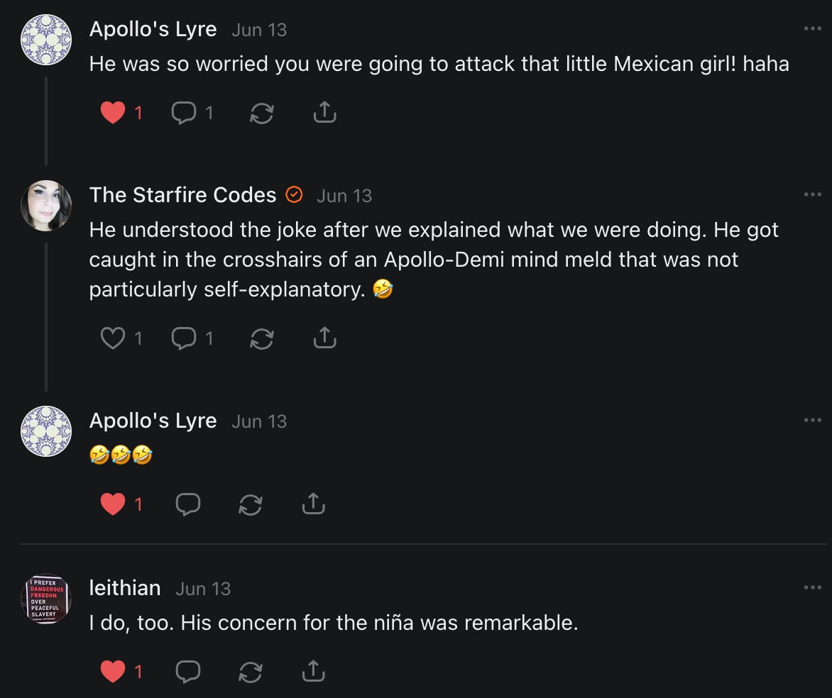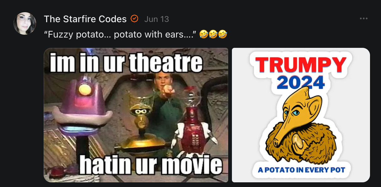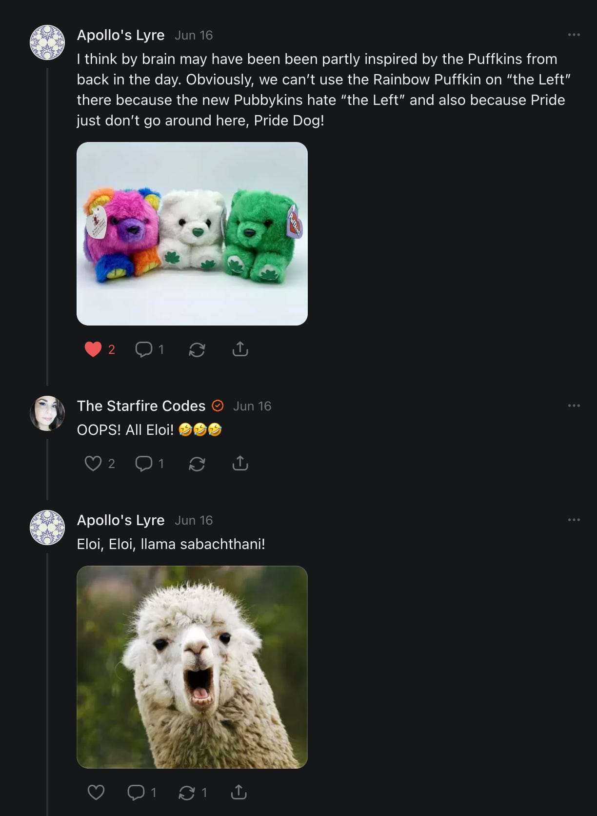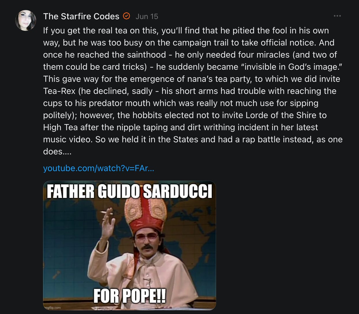 OK there’s so much great stuff here. First I think I got a notification of the tag but not sure because something about the scroll came and went on my screen and I was too distracted to notice if just the post or the tag🥺