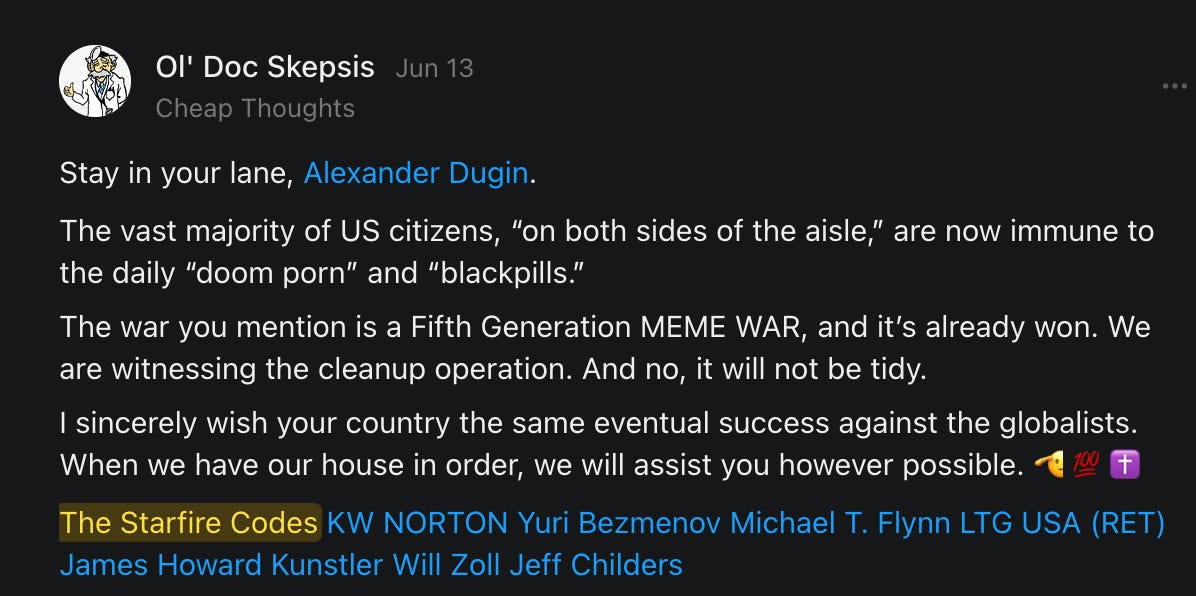 The Starfire Codes produces an audience-supported publication with a stellar podcast, consciousness-expanding daily spiritual content, and well-researched articles on forbidden but crucial topics.