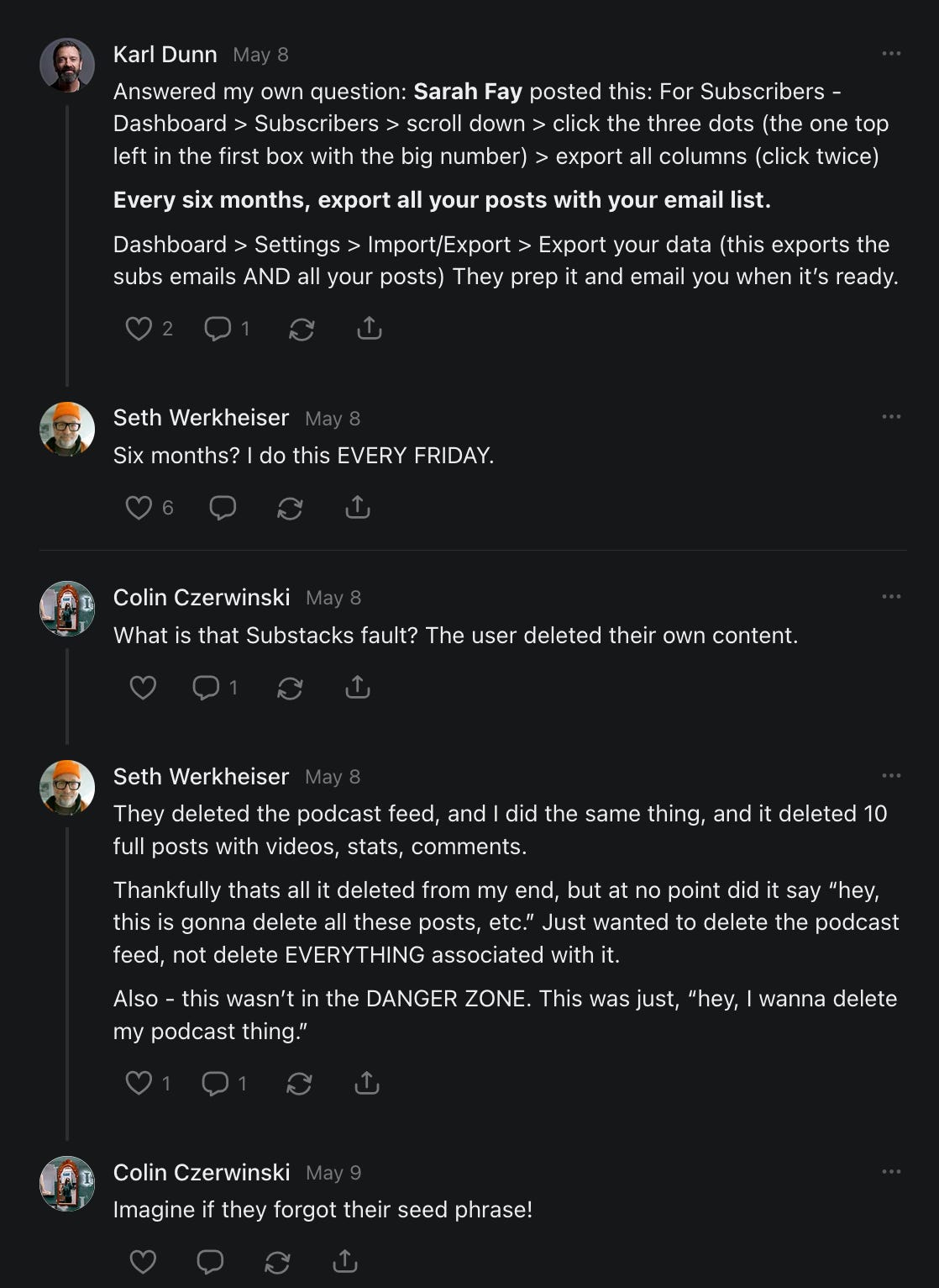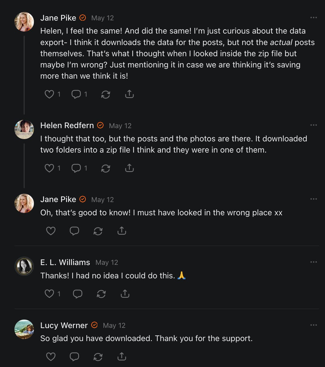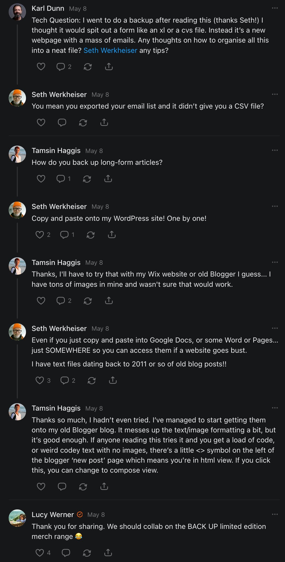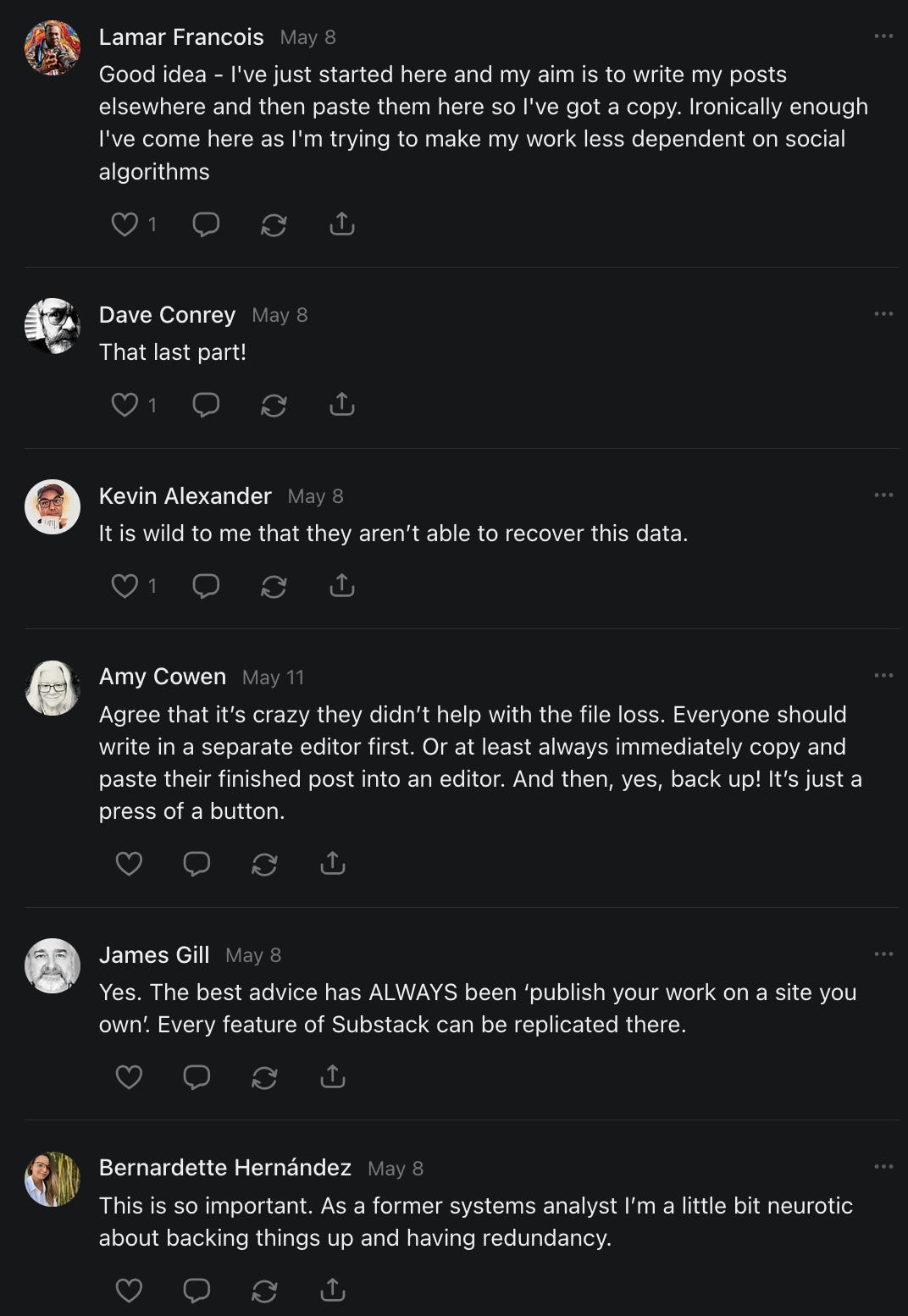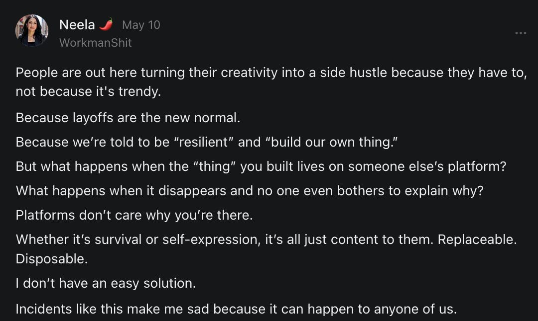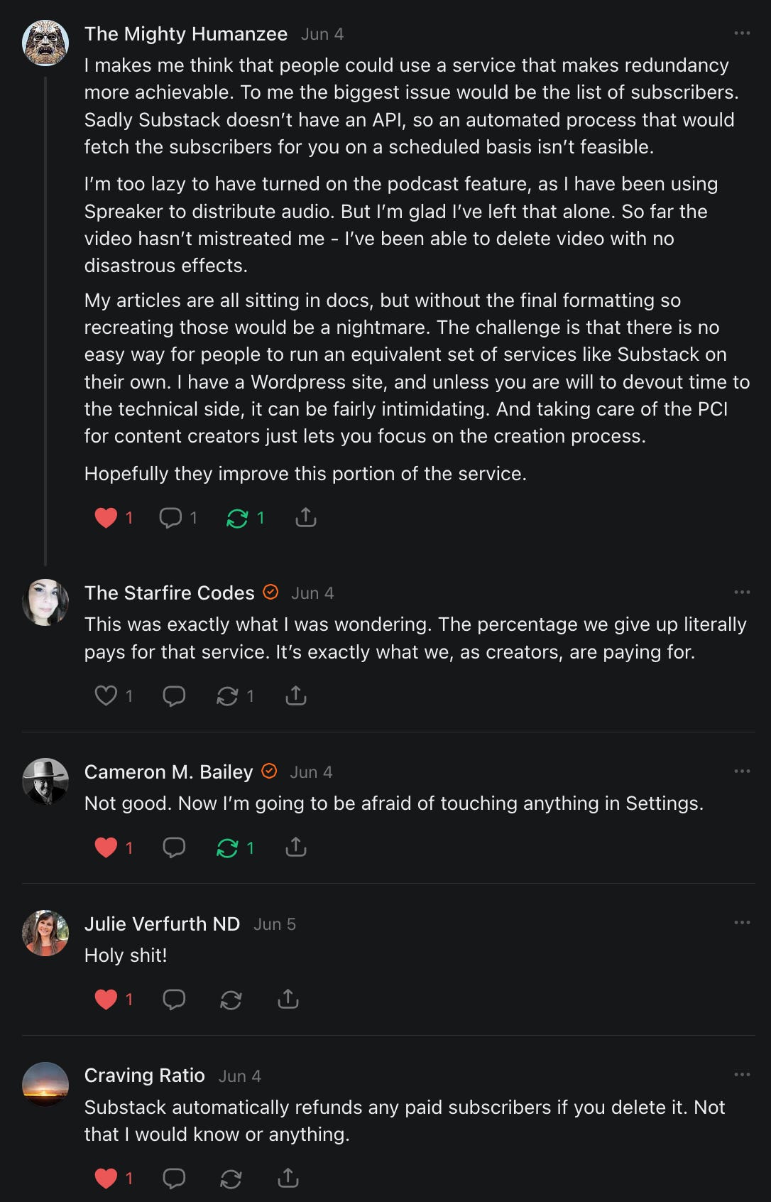 , , and to help them rebuild their audiences. The following posts are a testament to what this community can do for each other when they band together and make it happen. Please do share their stories and help them out. If this has also happened to you or someone you know, please drop a comment and/or link to the story so that we may support them in rebuilding as well. Also, do make a backup of your Substack just in case. Thanks in advance!]When you get a chance, please feel free to scroll through the special thanks list below and follow/subscribe to each other to show our SCROLL community some love for everything they do! 🙏🏻💜💫