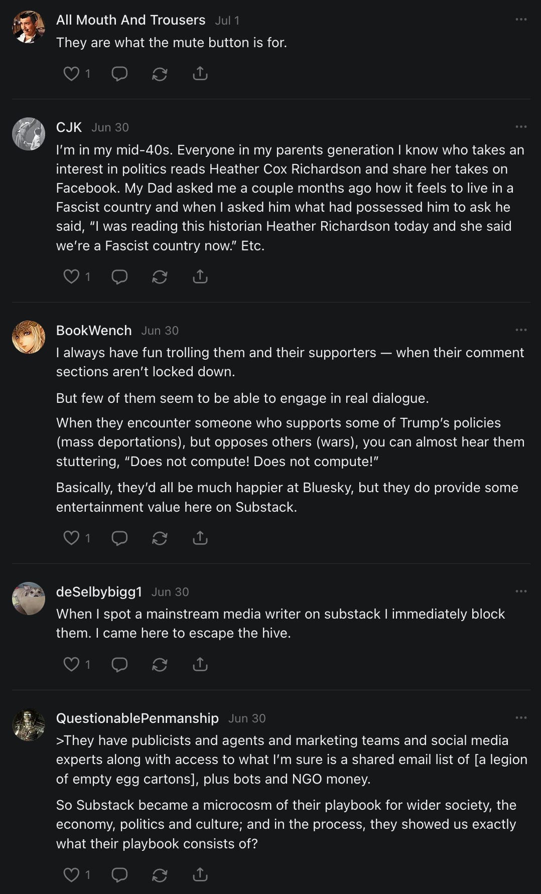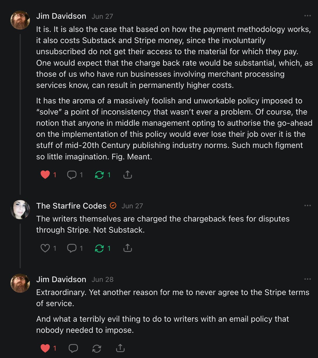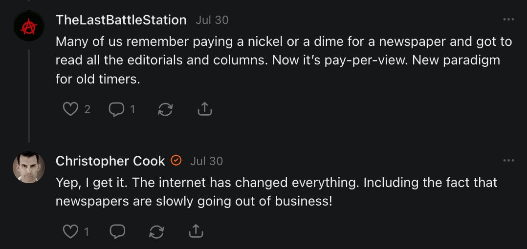 On net, I now lose 1 to 2 subscribers with every story I post. Almost all of these subscribers are "free." I've also written at least 20 articles on "curious trends" on Substack. That probably doesn't make me popular with any would-be Big Brother types.
