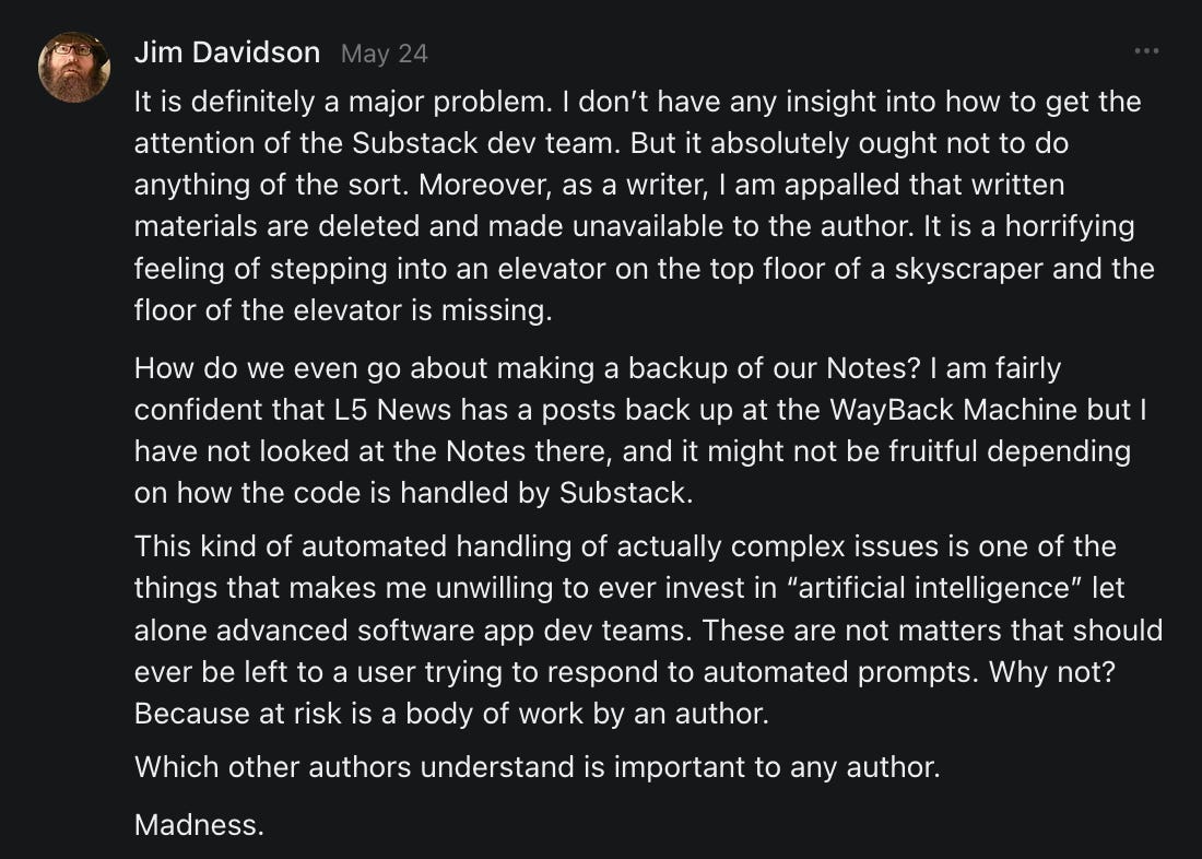 This is a SPECIAL EDITION of THE SCROLL which covers posts from writers who have had many recent issues with Substack service.