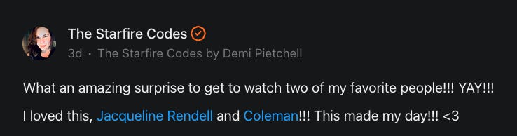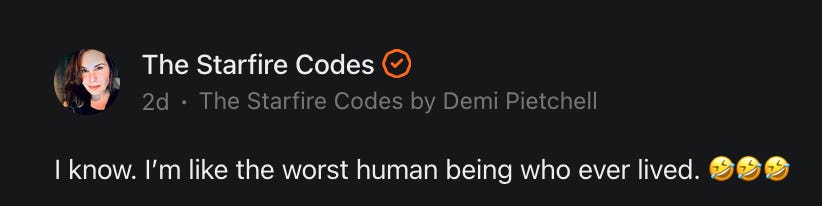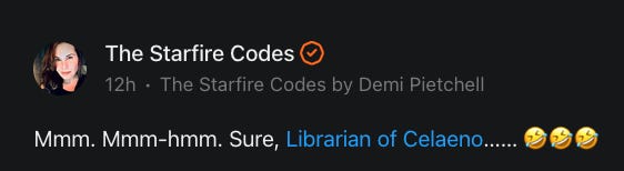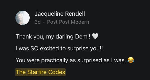 The Starfire Codes by Demi Pietchell is a reader-supported publication. To receive new posts and support my work, consider becoming a free or paid subscriber.