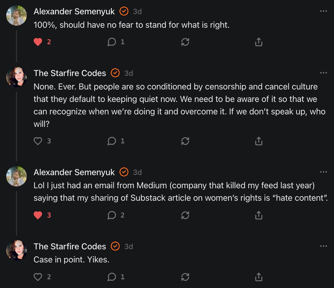 I didn’t come here to endure cancelling or censoring, and I sure as hell won’t put up with it.