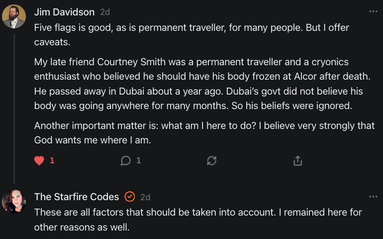 Doesn’t negate the value of having multiple citizenships during a time of flagrant tyranny so that you can choose where you go should anything awful happen where you happen to be, but it does afford better options for those who feel they “can’t” go that route for whatever reason.