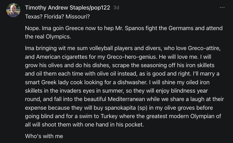 Notes On The Olympics, Derealization, Sixth Generation Warfare, Excuses, Five Flag Theory, Ride Or Die, Gen X, Tony Robbins, Accelerationism, Hyperstition, Cthulhu Club, Richard Simmons, and more...