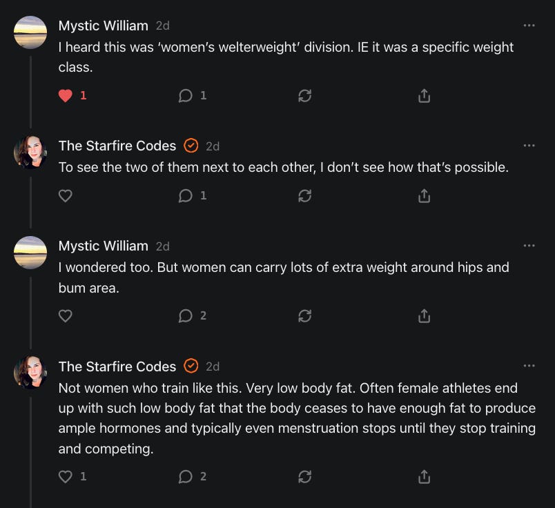 And with biological differences between muscles in biological men and biological women, this would be of concern as well.