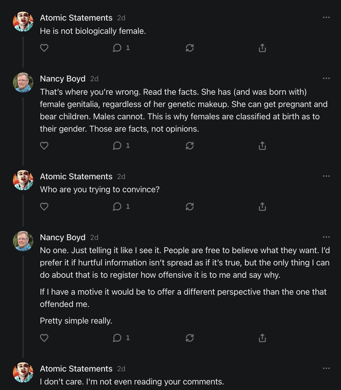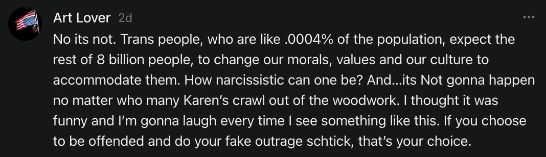 And I’ll tell you point blank - I went to art school three times… and I have NEVER in my life met a trans person who has disagreed with me on that. Not once.