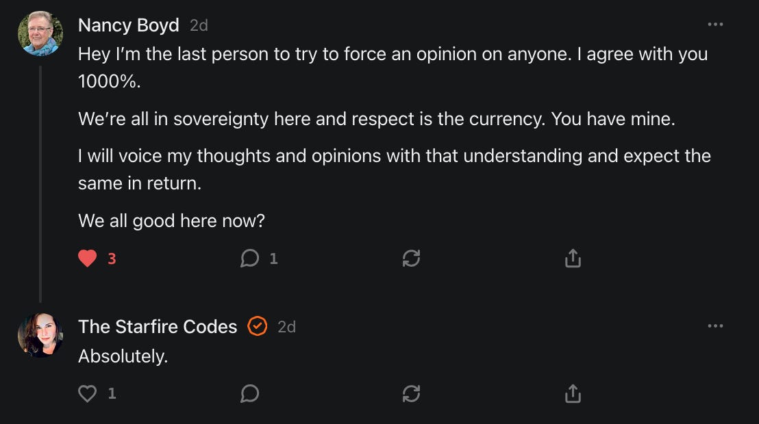 But we don’t need to agree with each other to coexist, so trying to force me to agree with you is only going to be met with more of my being assertive about being entitled to think for myself.