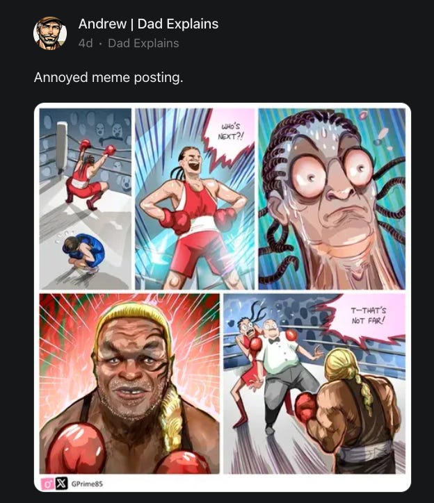 Haha. My Facebook profile is on red alert over that male boxer. They claim I am doing physical harm to him by posting about it. Oh, the irony! 😂