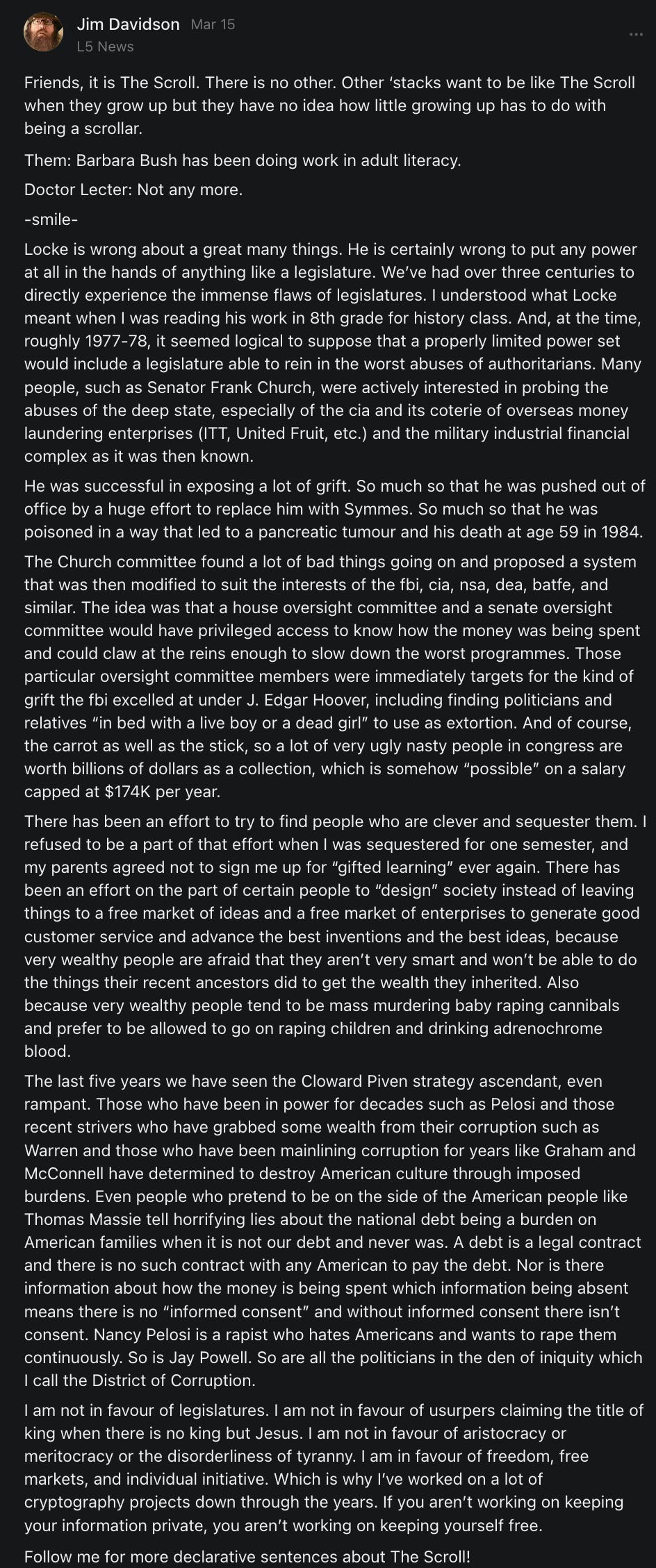 THE SCROLL is a weekly free-form multimedia stream of consciousness digest of interesting, informative, educational, and otherwise amusing posts and conversations from across Substack and amongst Substack writers and readers, carefully curated by the author.