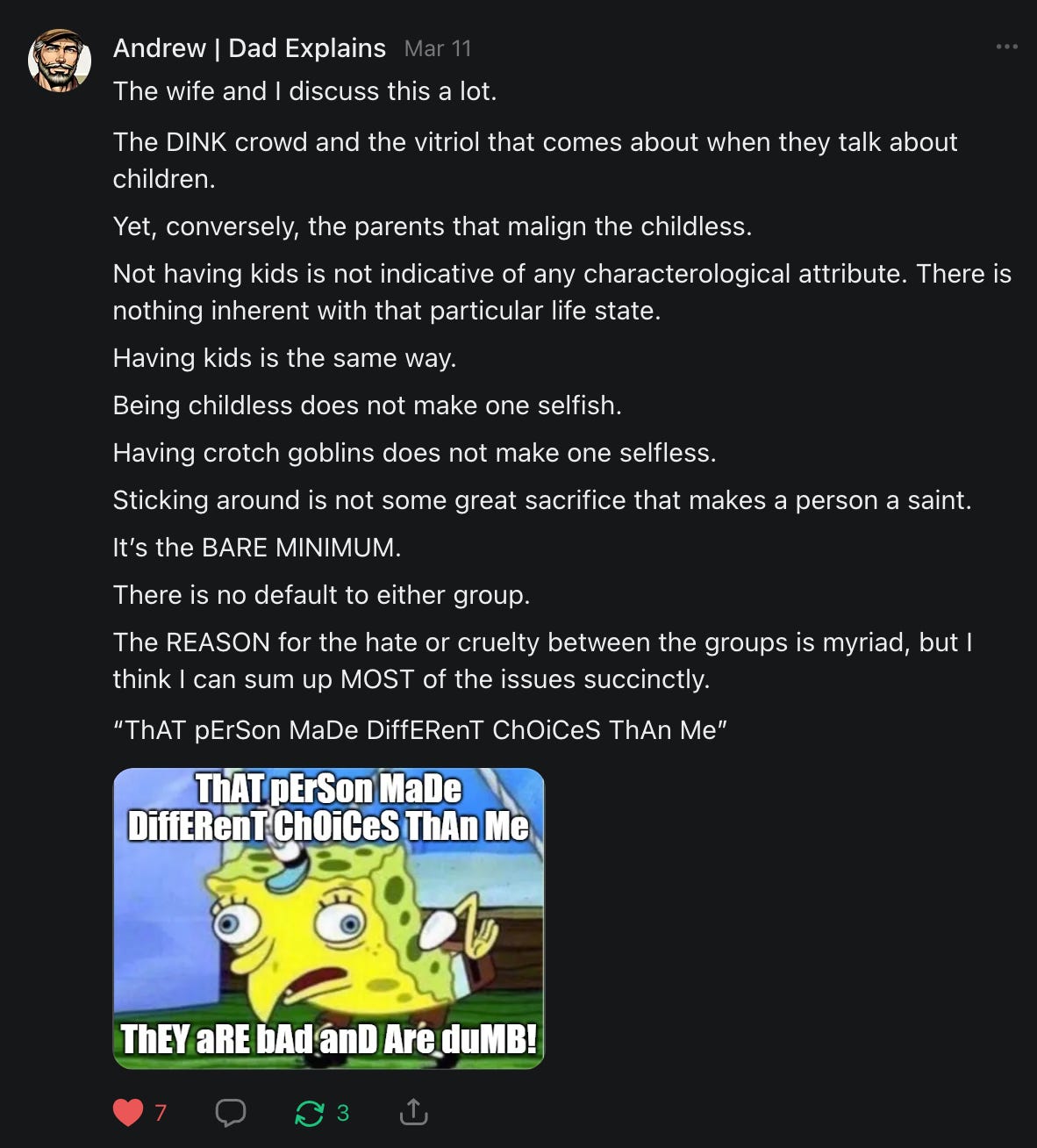 EMPATHY ON THE RIGHT FOR THE CHILDLESS….