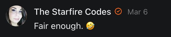 The Starfire Codes by Demi Pietchell is a reader-supported publication. To receive new posts and support my work, consider becoming a free or paid subscriber.
