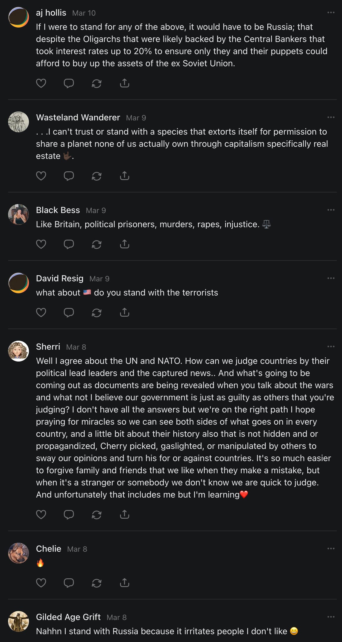 I STAND WITH THE PEOPLE IN EACH COUNTRY WHO ARE HELD HOSTAGE BY GOVERNMENTS THAT START WARS, DESTROY ECONOMIES, AND SUBJUGATE OUR LIVES….