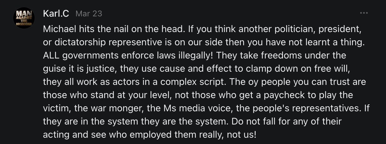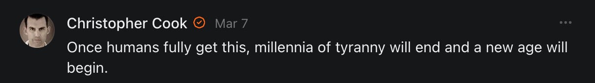Special thanks to Florida Fool, Donna, tru3, 2aAlltheWay, Laggy, David csaszar, PostPlandemicChronicles, Myriad Mike, Logan the Lobotomizer, Frank T Bird, @atommiller, Cygnus X-1, Selina Rifkin, Cori Bren, MaKenna Grace, russell b, OGRE, Daniela Tatz, Bradford Morgan White, Dave pearen, Thebrotatochip32, KMord, Cameron M. Bailey, Dear Citizen, Chris Hall, Stone Bryson, КАЯ, AJ, Nicholas Lawson, Joel J Miller, Ryan Hall, Teri Hyrkas, Apollo's Lyre, Sasha V, Dave pearen, ⚡Thalia The Comedy Muse⚡, Brenton Johnson, John Lawrence, Jules, Syre Byrd, Joanna Milne 🏺, The Mighty Humanzee, Christopher Cook, Brett Richards, Jacqueline Rendell, la chevalerie vit, Simone Senisin, An K., Van Gogh’s Ear, Adrienne, leithian, Jeff McConnell, risteeka, Jösta Troels, William Hunter Duncan, Joe Bulls, William “David" Pleasance, Adrasteia, HamburgerToday, Jack Everly, Mason, Storyteller, Holly, Philo, Buffalo_Ken, Tam, The Cormorant, Grand Mal Twerkin, PalomaDeLaPaz, Kenna, Fritz, April Novoa, Ryan Bromley, Debra Szalay, Simon Tanner, swiley, Suzirhae, Dantès, Rat, Z. Hajime Sertorius, Michael Arturo, Erica Newell 🌞, Adam David Worrall אדם, Andrew, Dawn Bernard, Alfred, Lord Featherstonehaugh, Karen LeBlanc, B S, John Moore, Darius, The Chief Bunkum, Amanda V Shane, The Ivy Exile, Meta Ronin, Koltin Scott, Patrick Joseph, Pamela Cummins, T.J. Hattor, i3utm, Mike Kay, Margaritas at the Mall, sumwoman, Christy Hardin, Remanon Last, Asperges, MRT’s Haircut, Angela Morris, Zach Frey, Trudi Nicola, Philip Ferrar, ThothStudio (JCofMars), Atomic Statements, Sheila Dean, L. E. Mullin, Dane, Kent Peterson, The Contrarian Capitalist, Barbara, American Nobody, Jac, Nathalie Martinek PhD, Andrew | Dad Explains, Charlotte Pendragon, Chelie, Cat Krilov, Goddess Renell, Librarian of Celaeno, BOWSER, Daniel P. Hirschi, m cameron, Greg Nance, rrodynmac, CrumpledForeskin, KMB, Corey Gruber, JLKUSA, Juan Baez, Jeremy, Sointu, Matthew Stanley, Darel Gabriel, Neil, Da News Bruh, mickeytwotoes, Grant Schaeffer, Franziska, Jeffrey Pikul, Kenna, Adam Chase, Snow Dogs Bob Lamond, Darin, Notsothoreau, Lukeas, Andrew Sniderman 🕷️, Daniel P. Hirschi, The Black Knight, Ken Miura, Sherri, Jenna Lynn Curry SPARKLES, Paul R, Jimmy Doom, René Volpi, Dan, Black Bess, Kevin Alexander, Love, Hannah's Signs of The Times, Nick Winney, Mickey Z., Dr.Don Hall, Ginger Cook, Mo., Ian Simbotin, Jacob Johnson, Deb C, koppykat, Juli Mination, Hollis Brown, David Resig, THE DAD PAD, Marina Roca Díe, Vanechka, Braeden Mitchell, David J. Gross, Mickel Knight, Buddy Wester, Christopher, Lenworth Roberts, aj hollis, Anthem Hayek Blanchard, Roger, Renee Green, Jim Davidson, Rebel2Tyrants, Victory Palace, Gilded Age Grift, Rich Glass, IPR with Mack Morris, Antila H. Belist, Robert William Schlueter, Doctor Kitt, Rooster, Angel, JMB, Claire, Seismic7, Ismael Ortiz, James Logan, Raj, Laura Garcia, Lori Gjording, Bonnie Tarlton, Geopolitics & Empire, RandyDelivers, Sy, missy pead, Daniel, Alan Devincentis, JoAnne Kozlowski, Wasteland Wanderer, Kazimir Malevitch, James Love-Vani, Karl.C, Nk, enigmatic proprietary, Jolyon Denton Williams, Eric Goodwin, Being Bonnie, Liberty Uncensored Newspaper, Phrygi of Phrygia, The Word Herder, Dr. Marizelle, Sane Francisco, Jaye, The Whole Truth, Sandra Combs, Leigh Spoehr, Larry Elseman, Una Redcrosse, Joe Layne, Noah Parrish, Julie, Karen, Gwen Kopley, AllAboutEve43, christopher cheatham, Cody Walker, Linda, Dana Morehouse, Buggs, Tammy Dodson, Dynamic DV, Richard Johnson, Guillem, Alicia Imel, Adam, werner aquadea, Inverted Reality, Boflys, Graeme Outerbridge, Stephen Obisanya, Dan, Katherine Blair, Darrin, The Brothers Krynn, Robert Fireovid, Nima’atitui, Albert Cory, Iserlohn, Lia, Franciscan Poet, AJDeiboldt-The High Notes, miles.mcstylez, Baldric, Leaving Art School, Jammo, Raskolnikov, Scott Cormier, Jolene, Tim Parish, Austin Boucher, L.L., Dave White, Ray Foy, LaMaisonGelat, glenn, Mojo Woo, Marinarena, Lincoln, DC Reade, Based in Paris, Tracy, The Bone Writer, Rukhsana Sukhan, Martin T, Dee Rambeau, River Laurie, Switter’s World, Eunié light, Michael Newberry, Mark McGrath | OODA Strategist, SLK, topernic, Zoran, Sarah Rhabarber, Shasha Zuccherelli Lopez, Ratib Baker, OneLove, M Le Baron, Eddie Miller, Annieinthecity, Tim Ebl 🇨🇦, Andō, Lawrence Phillips, la libertà, Andrea K, CG Karas, Kathy Grossman, Michael Myrick, Sean, Sane, Asen, Names,🤷🏽♀️, Joyce, Bill Adler, Renee Green, Notes On Useful Beauty, Tess McCarthy, RosTy, The Brothers Krynn, Danny Duece, Erik Hogan, Darian Δ, Daniel Puzzo, Alexandru Constantin, Annette D, Lisa, All Mouth And Trousers, Jeff Daugherty, Capital Curve, 13/1 NYS CONstitution, Karina Pawlak, Matt Monster, smellycarney, Fukitol, M. E. Rothwell, mike vague, Lisa Marie, DwarvenAllFather, Awenyr (ProtoLuna), Vincent rockwells, Adam McDermont, Marisa, Christopher Van Name, 📚OnceUponADeadline, Vivian Keller, Nemo, Tim Williams, Suzanne B Davis, Carol Sutherland, Deborah, Marcia, J. Lashley, MJ Bel, Anna Gibson, Andrea M, The Fundamentalist Plato, Andersen, Paul Plett, Eva dick, Timothy Grant, Craving Ratio, David Arthur Walters, I Know Nothing, Impulsivarea, Blessed Warrior Reina, Mercedes de Santiago, Mariesha Braley, Jon Howski, The Symphony of Art, Ben Woestenburg, Winkfield Twyman, TC Marti, Danielle D, J D Lear, Diane Burley, Marti, Kitija, Angel Johanni, Rob Heath, PhilanthroPissed, Kristin Swan, qangin, Saint Jimmy, Bryan, Karen Gravitt, Pam M McKelvy, Datura, Cindrianna, SRC1952, Donn Harper Jr., MaKenna Grace, Dee Magick Maverick 777, Jim Davidson, The Stern Golum, Ancient Problemz, Lucas, Priyanka Dora, Yakubian Ape, Alex Dobrenko`, E. Sjule, PostPlandemicChronicles, Ben, Ravetopia, Margaret Anna Alice, Doc Malik, Lirpa Strike, The Pseudo Intellectual, Helga, OdinicWyrd, RedFella, Guy Dudebro, Dawn Lester, Ishmael Hodges, Ausnon, Akshat Maurya, Karina Pawlak, Robert Peter Kearns, s_e_t_h, Mighty-Quinn, the author, Jarlis, Amos