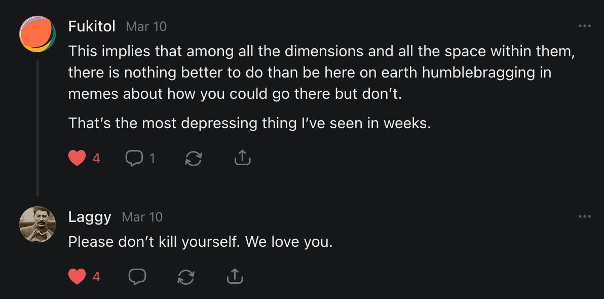 Each time I go to write you back, the app crashes. In the spirit of the theme of the beauty of impermanence and nostalgia for the passage of time, I can’t really get rattled about it, but damn was that obnoxious. 🤣