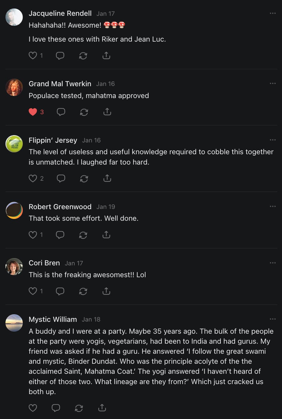 We hope that you will not only find the information herein useful, educational, and amusing, but that you will also reach out to each other by liking, subscribing, and contributing to each other’s posts, Notes, and work in general.