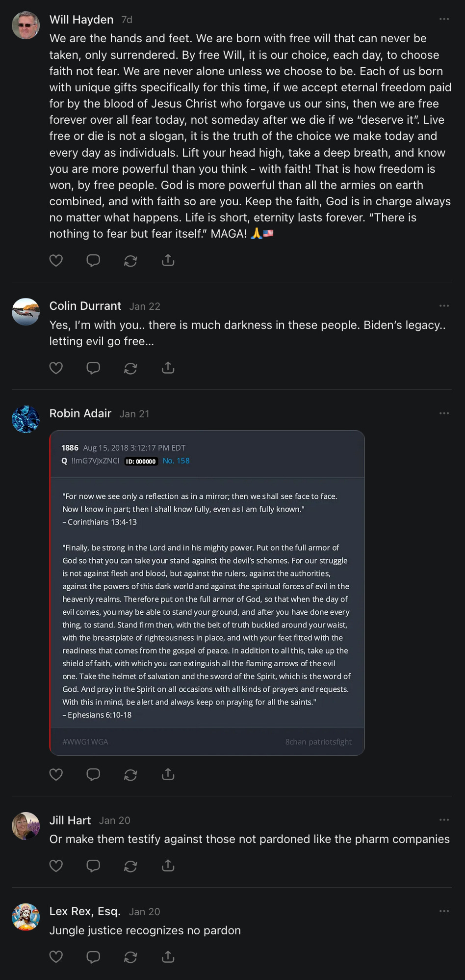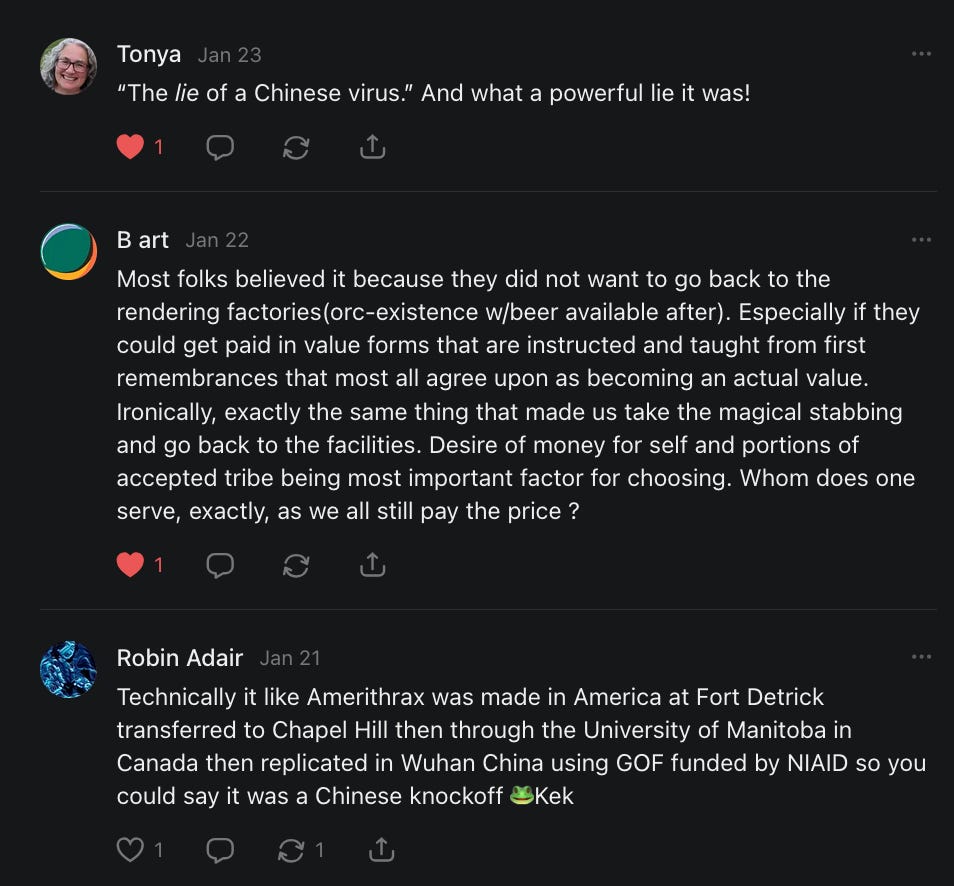 And I don’t pardon any of the people behind the scenes, in the think tanks and in DARPA, who concocted and deployed this narrative and bioinfrastructure knowing full well that it would kill and injure millions.