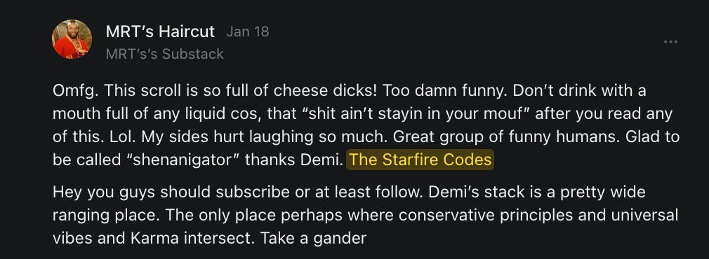 The Starfire Codes produces an audience-supported publication with a stellar podcast, consciousness-expanding daily spiritual content, and well-researched articles on forbidden but crucial topics.