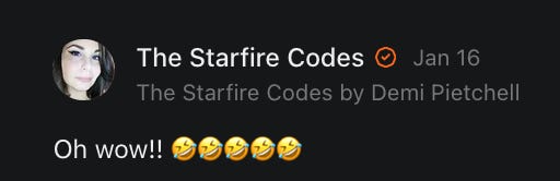 The Starfire Codes by Demi Pietchell is a reader-supported publication. To receive new posts and support my work, consider becoming a free or paid subscriber.