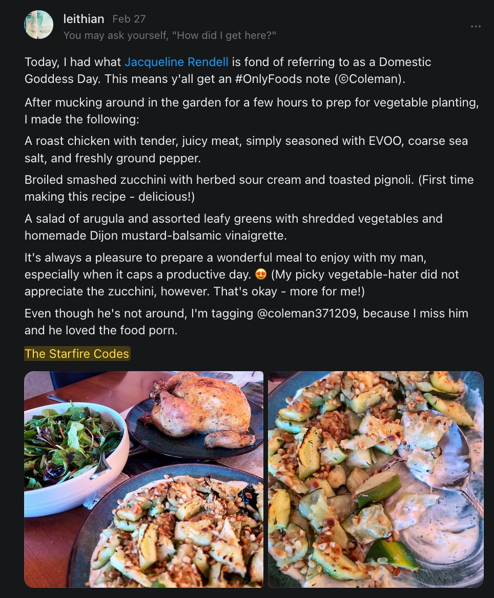 Oh my goodness I'm drooling all over Leviathan's food again!! YUM!! 😂