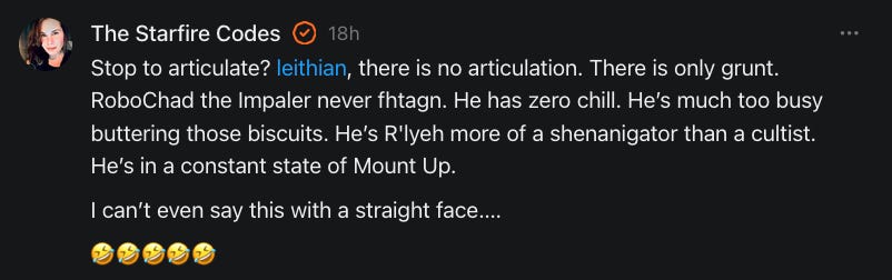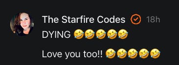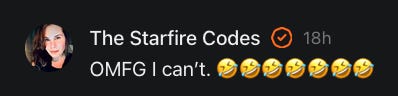 “I don't know why I can't stop laughing. You got me going on that post and I'm losing it. 🤣🤣🤣🤣🤣🤣” -