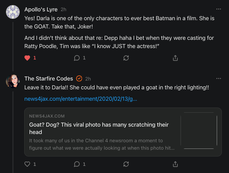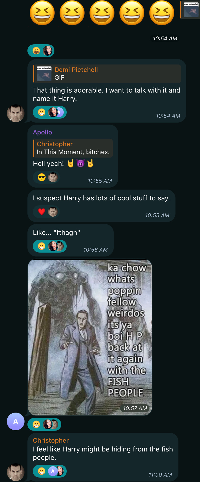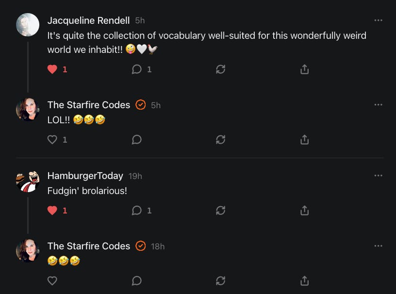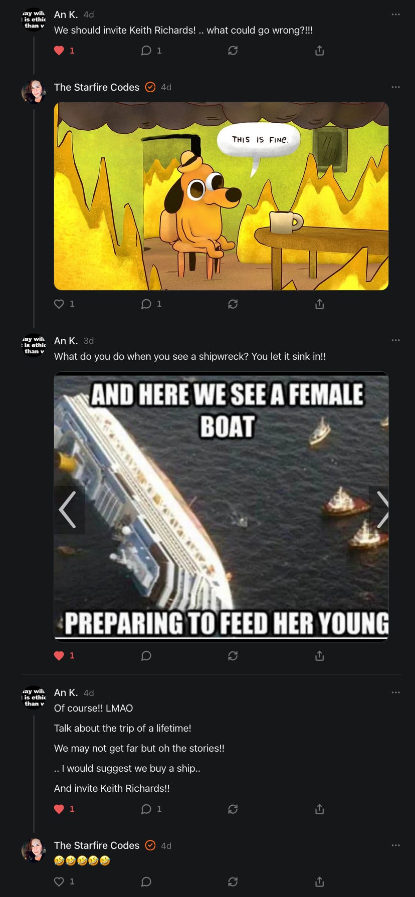 “I sometimes wonder if people read our exchanges on SS and think "WTF?!" which just makes me laugh harder.” -