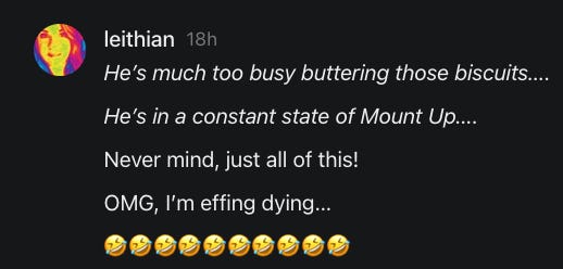 “I was waiting to see what you'd do with that. You did not disappoint. 🤣🤣🤣🤣🤣🤣” -