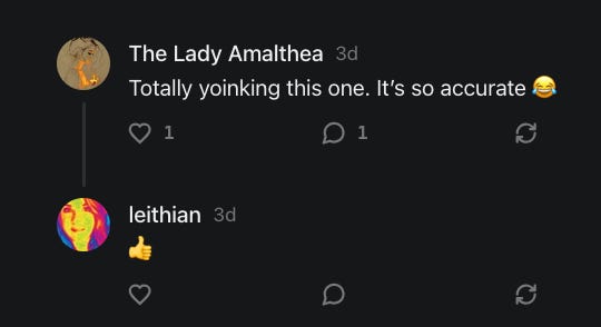 We hope that you will not only find the information herein useful, educational, and amusing, but that you will also reach out to each other by liking, subscribing, and contributing to each other’s posts, Notes, and work in general.