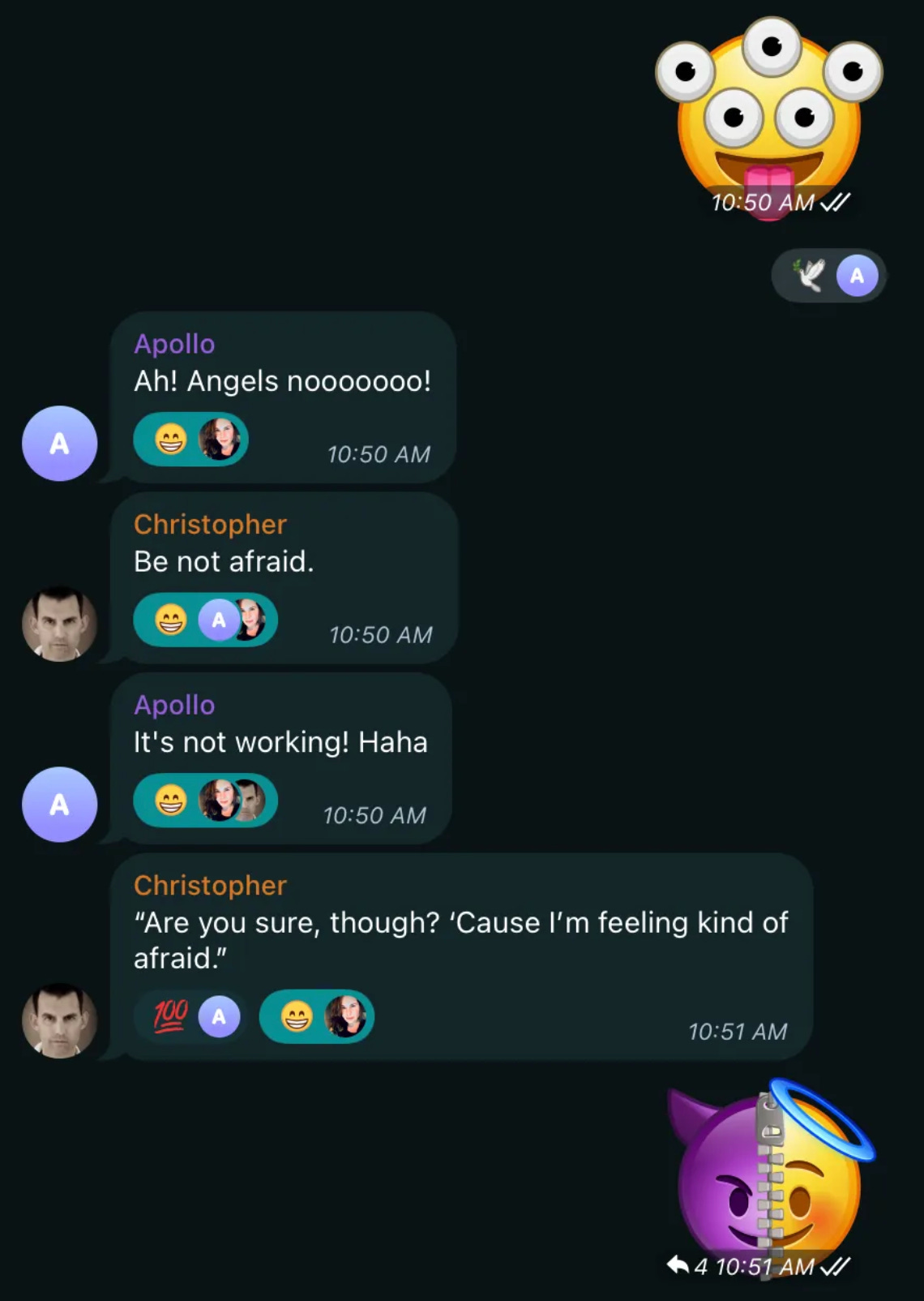 If angels wanted me to be not afraid, they could always appear as Darla. Just sayin'.