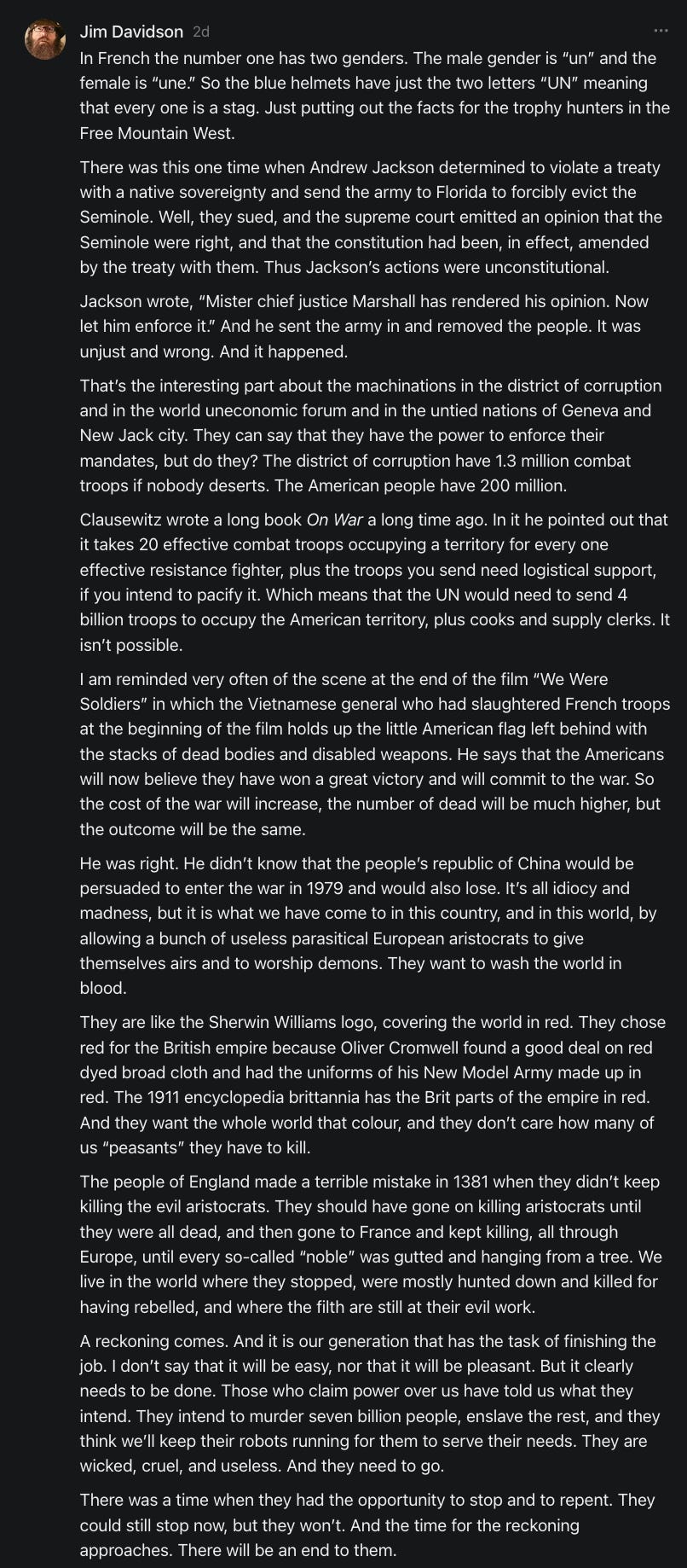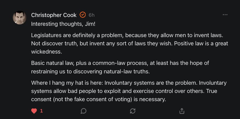 I know @Christopher Wood... oh, bother. I cannot tag people in this note, possibly at this length or for some other software reason. -sigh- Well, I can tag him in a restack later perhaps. {shakes metaphorical fist at software dev team and their many lapses} {remembers that it is a set of miracles that any of this stuff works at all} {sighs again} and others, including my friend Ken Royce (also known as Boston T. Party) have identified a great deal of material about the constitution that is clearly meant to allow for future abuses and usurpations. If you like great books try Ken Royce _Hologram of Liberty_ in which he goes into excellent and lengthy detail on this topic.