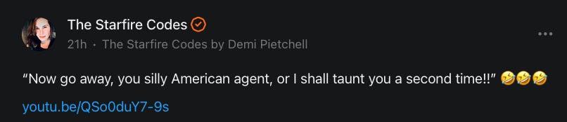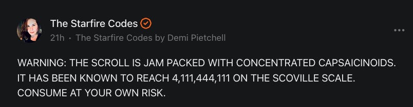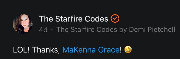 The Starfire Codes by Demi Pietchell is a reader-supported publication. To receive new posts and support my work, consider becoming a free or paid subscriber.