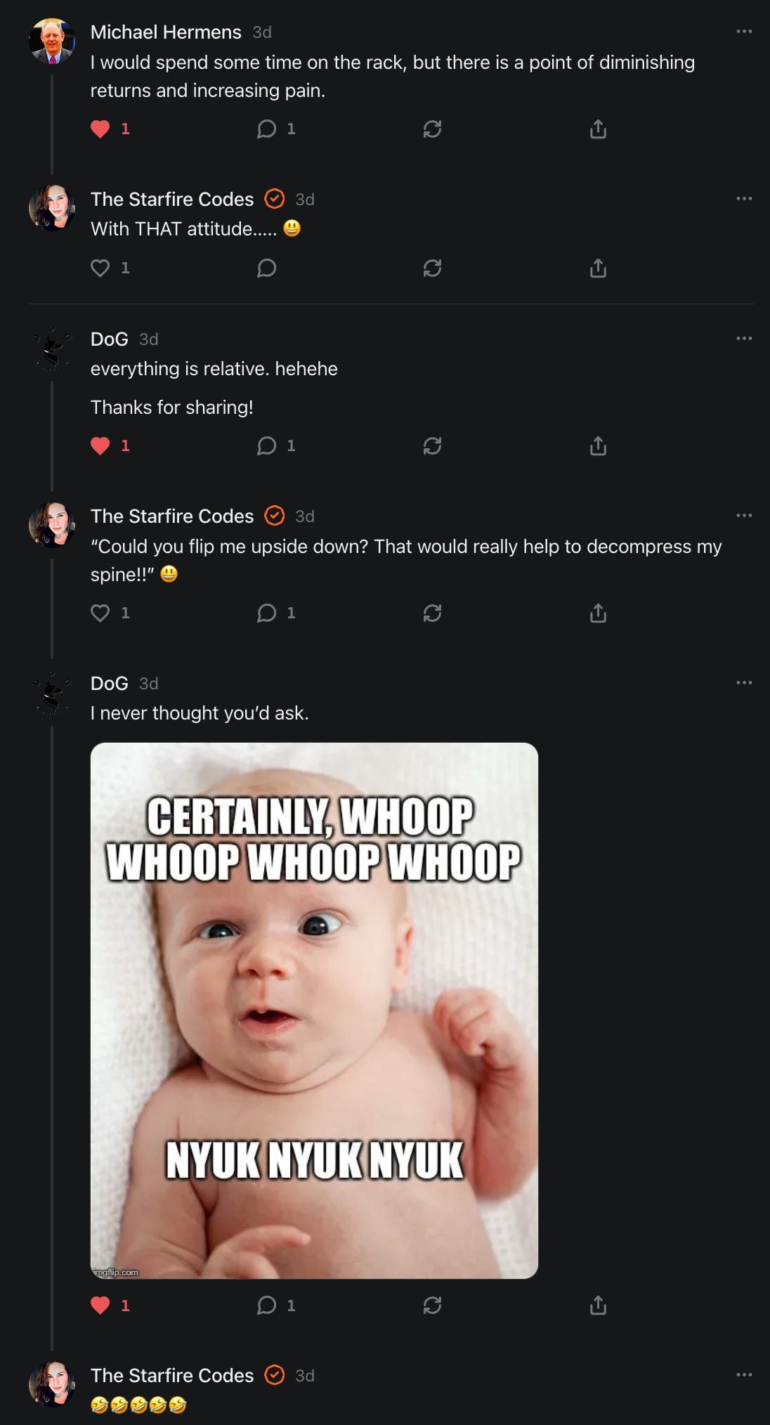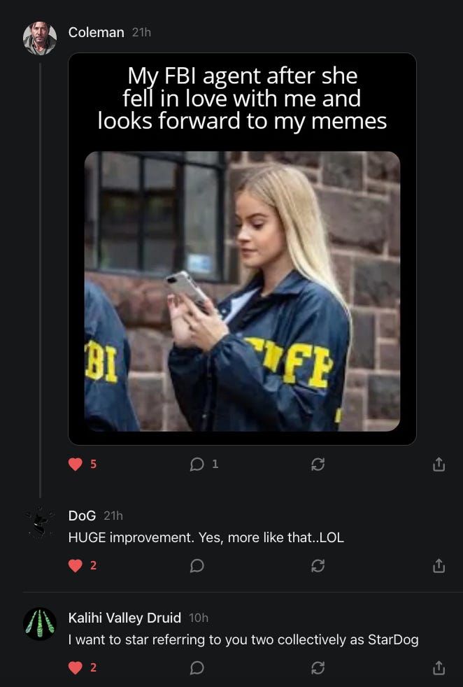 “The engagement on Substack is like no other platform. Gab's gone downhill, I post a funny meme there, I may get 1 like. I also have been at 1.9K subscribers for years. No love.” - DoG