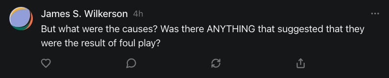 They didn't say what the cause of death was. But we can guess.