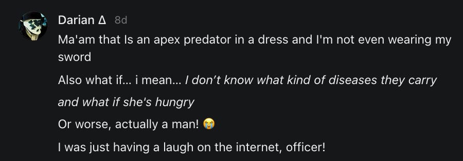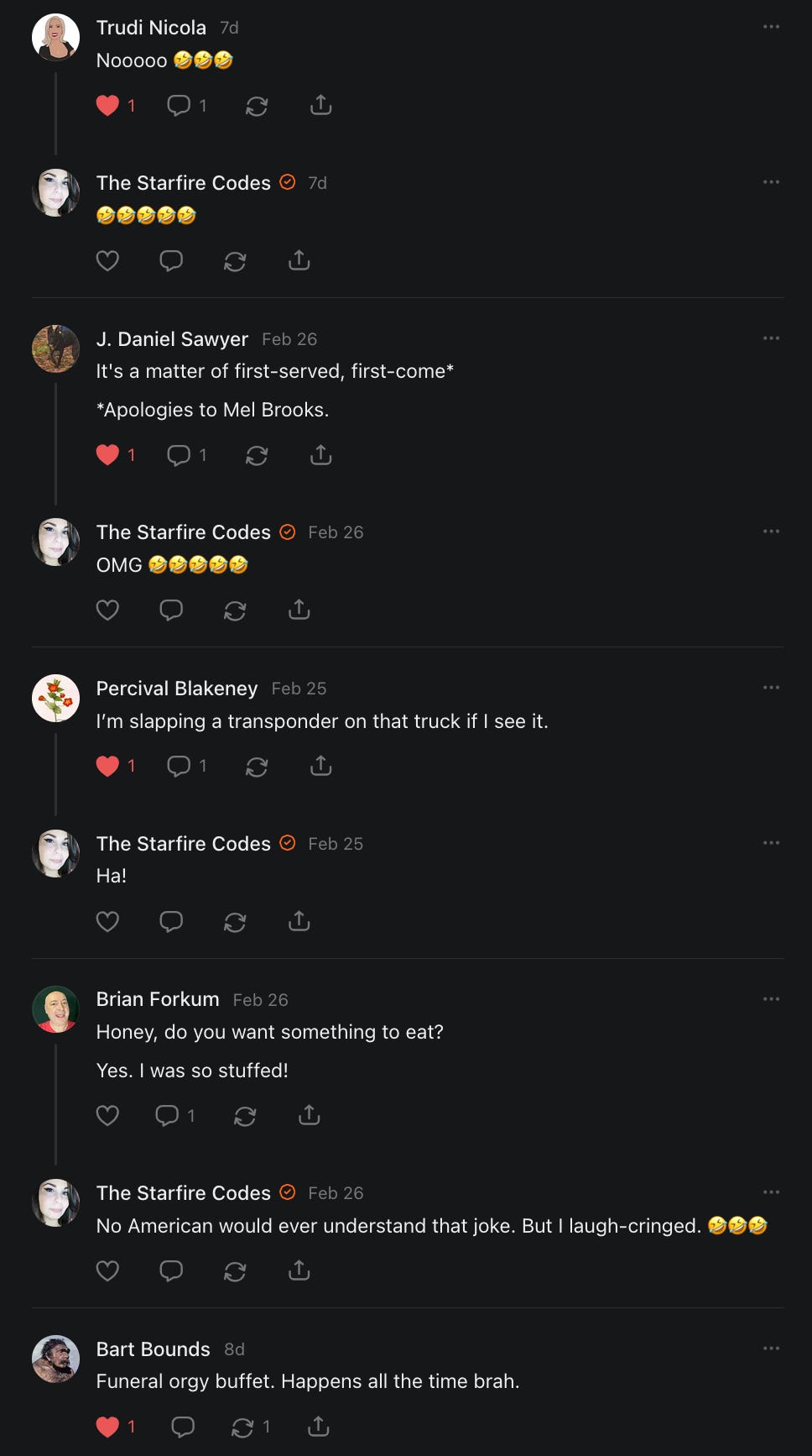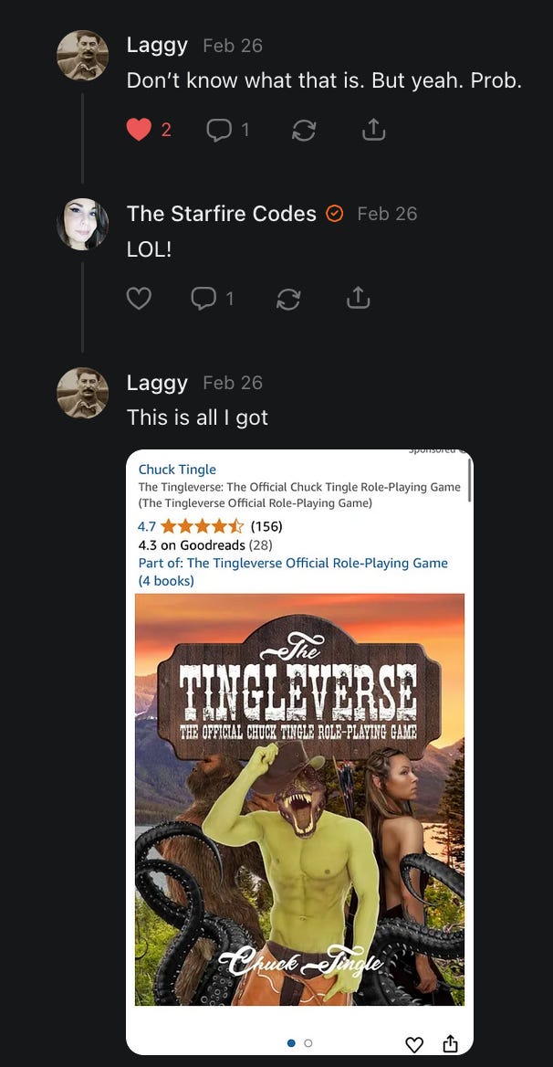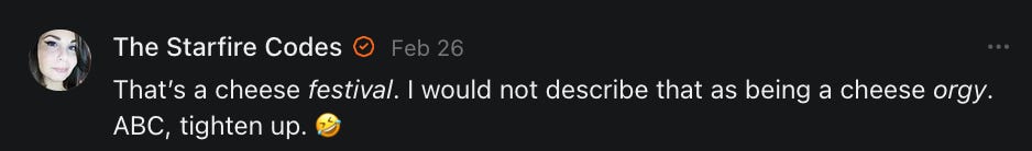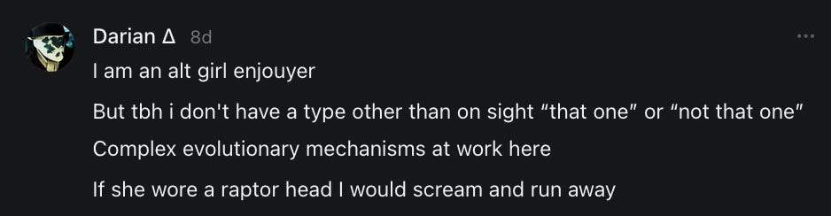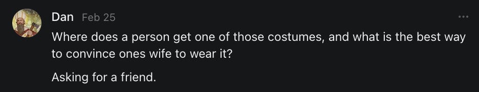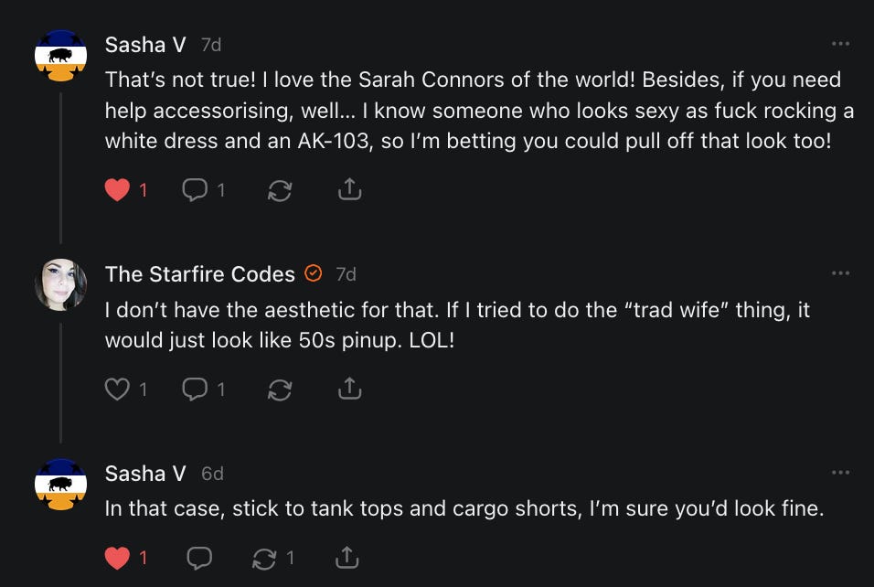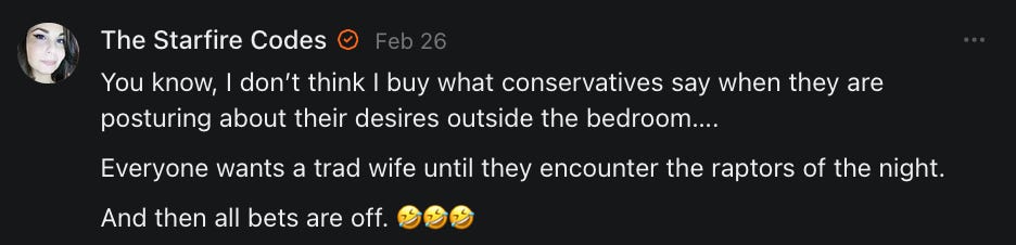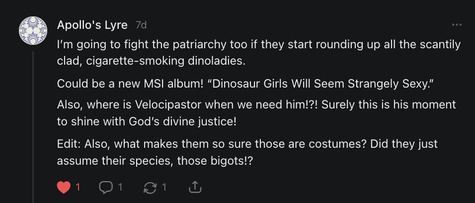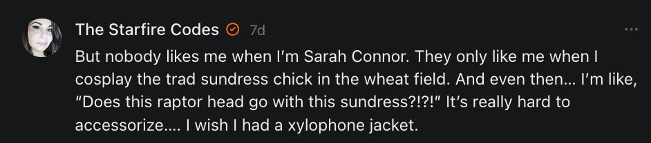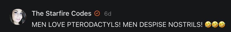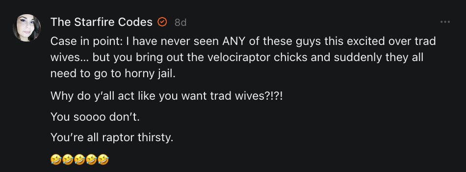 Notes On Orgy Caterers, The Trad Wife Lie, Sarah Connor, Dita Von Teese, Shapeshifters, CATDANCE, Dad Jokes, Praise From A Friend, Chuck Tingle, Do Not Break Down, Pterodactyls, Nostrils, and more....
