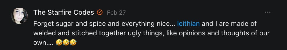 We hope that you will not only find the information herein useful, educational, and amusing, but that you will also reach out to each other by liking, subscribing, and contributing to each other’s posts, Notes, and work in general.
