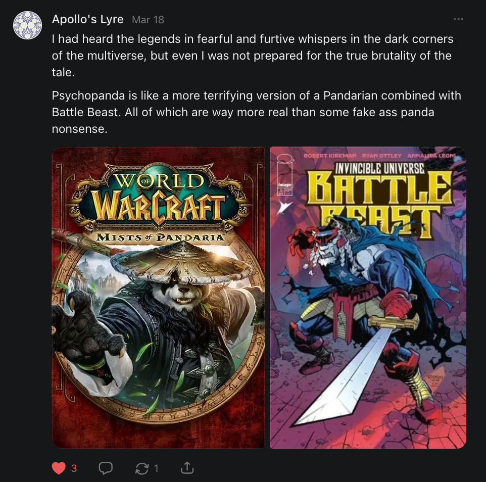 THE WARRIOR KNOWN ONLY AS PSYCHOPANDA, BUTT POTATOES, AND OTHER VARIOUS CTHULHU CLUB LORE….