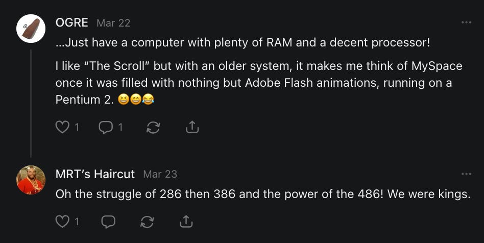THE SCROLL is a weekly free-form multimedia stream of consciousness digest of interesting, informative, educational, and otherwise amusing posts and conversations from across Substack and amongst Substack writers and readers, carefully curated by the author.