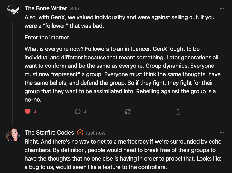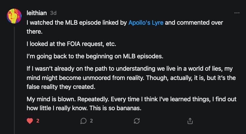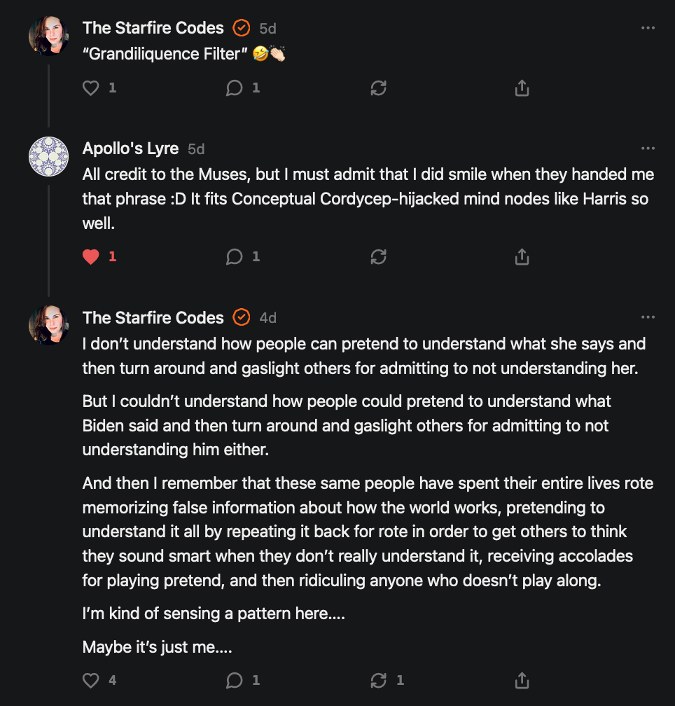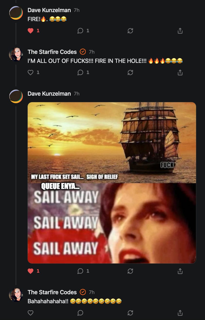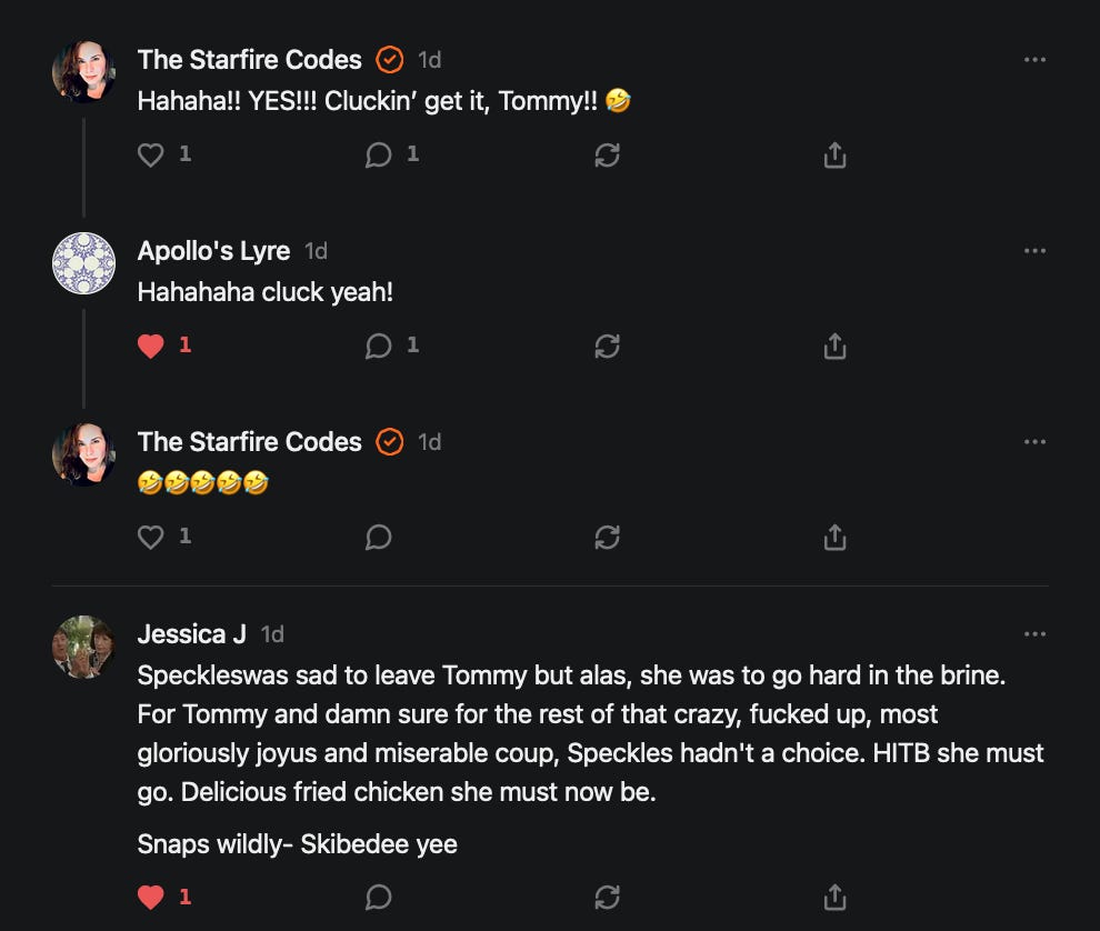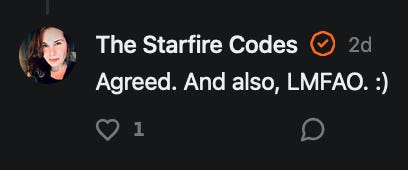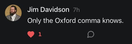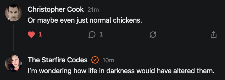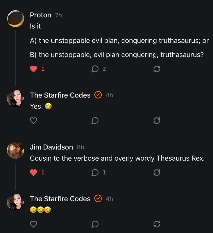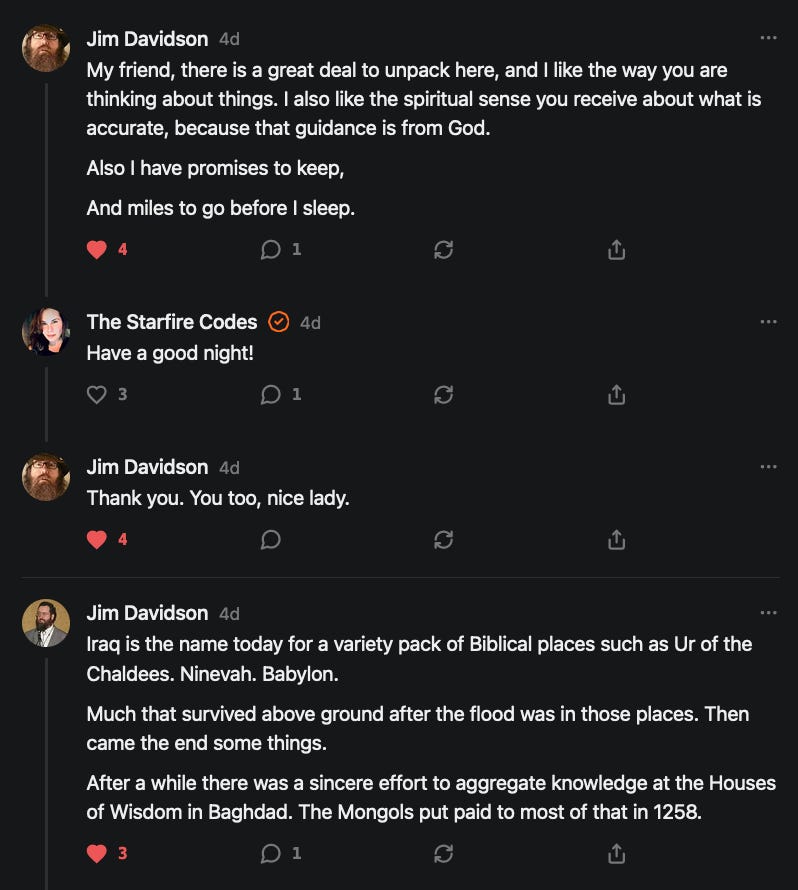 Special thanks to 13/1 NYS CONstitution, Aaron Waddell, Abigail Starke, Agnes, Ahmed’s Stack of Subs, AJ, Alan Lovejoy, Alan Simpson, Al Ballesteros, Alexander Semenyuk, Alex de Carvalho, Alex Ilex, AlgoTradeAlert, AllAboutEve43, Allegories And Inquiries, Amel Figueroa Sanchez, American Dissident, AMP, Amusings, Andre Moss, Andrew, Andrew Beebe, Andrew | Dad Explains, Andy Barnes, Angela Morris, Annette kimball, Annie Mc, Annie Today And Tomorrow, Antila H. Belist, Apollo's Lyre, ArtemisForestFairy, A. Ship, Ash 1952, Atomic Statements, Barbara Wegner, Barry Eby, Bart Caruso, Bill, Bill Lacey, Bill Pocklington, Bill Rice, Jr., Björn Olof Elisson, Blessed Warrior Reina, Blue Ridge Barbarian, Bob, Bob Hannaford, Boflys, Braeden, Brett Dill, Brian Forkum, BugGoo, Cameron M. Bailey, Caroline Lindon, Cape Coral Tony, Carolina Uribe, Cat Krilov, Cherri Vieau, cholli, Chris Frick, Chris Hall, Christina Gerrard, Chris Youngblood, Cinder, Clee Images, Coco McShevitz, Coleman, Colin Elliott, Connecting The Dots, Contrary to Ordinary, Cori Bren, Cygnus X-1, DancingInAshes, Daniela Tatz, Daniel W. Marshall, Danway, Darius, Dave, Dave Graziano, Dave Kunzelman, Dave pearen, David Reed, Dawn Bernard, Deborah Clark, Deborah T. Hewitt, Dee Rambeau, Dennis T., Dennis Wilson, Dharma Rose, Dianne, Dissentious Skwrl, Doctor Kitt, Dog, DoG, Don, Dookie Boi LaCroix, Dorothy Unleashed, Dr.Who, Duchessa Lia, Duke1832, dwtruthwarrior, Edward E Campbell, El doctor, Elizabeth Kelsey, Elizabeth Neville, ElRey_Congo, Elsie E Connelly, Emily, Emily M, Eric Brown, Eric Coppala, Erik Hogan, Fil666, Fizzy, FOOL, Forest Myers, Frank Barone, Fukitol, Gabriel, Geno Merryman, Germaine Lambergs, Gilgamech, Ginger Cook, GO, Grand Moff Porkins, Grand Schemes, Greg Snow, G. T. A. Ogle, Guy S. Waltman, HamburgerToday, Hannah Francesca, Hannahlore Trickett, Hannah Rose Williams, Heather B, Hege Kristoffersen, HFO (thepixieminx), Holly, Hugh Mercer, i3utm, Iam Weare, Ian, Ian Michael Lessard, IPR with Mack Morris, Iseeit, Jace, Jack, Jack Backes, Jackie J, Jackieone, Jacob Clarke, Jacqueline Rendell, Jake Purvis, James Costello, James Kirira, James True, Jane, Jason, Jen Goldman, M.A, Jenn, Jeremy Mercier, Jerome Armstrong, Jessica J, Jim Davidson, JM, Joe Bulls, Joel, Joel S Turrentine, Joe Reiter, John, John Mistretta, Johnny J. Johnson Jr. Esq., John Seaman, Johnstone75, Jonathan Fletcher, Jonathon, Joseph Hex, Joseph Montenegro, Joseph Saltzar, Josh Slocum, Joshua T Calkins-Treworgy, Joyce, JP Spatzier, JRCCreasey, J.S. Kasimir, Judson Stacy Vereen, Julie Fowler BA MA FCIM, Jweli, Kalihi Valley Druid, Karen Lynch, Karen P, Kat, Katherine Blair, Kath Lauderdale, Katy Marriott, Kay, Kaya Marie, Kelly Knight, Ken Barber, Ken Macko, Kenneth R. Mintz, Kerry, Kevin Bass, Kevin kenneth koehnke, Kevin Nash, Keziah_Soj, Kobalevsky 42, Koshmarov, Kristi Hadix, KSBfx 2020, Kyle Kissinger (no relation), Lady Libidex, Laura K, Lee, leithian, Lerville, Lia, libertà, Librarian of Celaeno, Liz, Liz Zimmers, Louise Tozzi, Love, Lucianna Aislynn, M7reads, MacGuffin, Maggie, MaKenna Grace, Mana Satto, Marie Christina Nørgård, MariKate, Marilyn S, MargaritasattheMall, Mark Blanda, Mark McIntire, Mark Roemers, martha, Martin Lewis, Martinus, Mary Dee, Mason, Storyteller, Matthew, Matthew Haviland, Matthew Thompson, Matt Taibbi, Max Clark, Melissa Petrie, Merry Edwards, Michael Hermens, Michael Newberry, Michael Rader, Michael S. Alford, Michael Woudenberg, Michelle Lobdell, Miep, Mike Kay, Missives From The Quantum, mg, M Le Baron, Morgthorak the Undead, Mr Nobody, MRT’s Haircut, MuggsSpongedice, M. V.M. 718, Mystic William, Nancy Boyd, Nancye, Nancy G, Nani Lani, Nate Winchester, Nathalie Martinek PhD, Nelo, nESSie, NHNEC, Nikkinike, Noah Goldstein, None Of Your Business, NotaBot, NOT Today, Nurse Kristin, Obsidian Blackbird., Odin ⚜️, Over_by_art_Minnesota, overflowing ashtray, Özge, Paolo Peralta, Patrick Morton, Patrick Muindi, Pat Spano, Paula Lynn Hay, Paul Kirwin, Peg Forbes, Peregrinus, Peter Bullard, Phi Eridani, polistra, qangin, Queue the Revolution, Rachel Cheeney, Randy Lessley, RANDY O’TOOLE, Rascal Nick Of, Rat, Ray Butler, ReadingRainbow, Reuben Salsa, Richard Nielsen, Rick Spencer, ric leczel, Rob, Robbie Newport, Robert cates, Robert Caulkins, Rob Watkins, Roger, Rosemary B, Russell Gold, Ruth Dupre, Ruth H, Ryan Williams, Sally, Sam, Sandra Combs, Sarah C, Sarah Powell, Sasha Stone, Sasha V, Scott, Scott Halverson, Scott MacInnis, Scott Uhrmann, ScrewWorm, Sean, Selina Rifkin, s.e.t.h, Shannon, Sharon Wilson, Shauna K. Hunt, Sigma Jedi, Silver Bear, Silver Warrior, Simon Tanner, Singing in the Dark, Slogger, S Mooney, Snunya B. Inniss, Solarah, SpandX, Starr O'Hara, Star Sourcer, Stay Sane Substack, StClair Tweedie, Stella Bell, Stephanie, St. Ignatius, Stone Bryson, Sue Charles-Hendy, Suzanne, SVour, Tara, Terrence Gideon, Teuta Blackman, Thea, TheAbjectLesson, The Bone Writer, The Brothers Krynn, The Dissident in Us, The Ignorant Ninja, the long warred, The Lurking Ophelia, Theodore Atkinson, The Shadow Band, Timothy Andrew Staples/pop122, Tina Hancock, T.J. Hattor, Tom Slick, Tonioconni, Toobguy47, TPWSYL, Trevor England Q., trhinz, Trudi Nicola, Tyler Bledsoe, Unapologeticallyyourstruly, Uncouth Barbarian, Vance Gatlin, Van Ivey, Victory Palace, Vulkan, Waylon, William Hunter Duncan, Your Friend Dave, and Zenitheus for inspiring these responses and the subsequent posts and conversations.