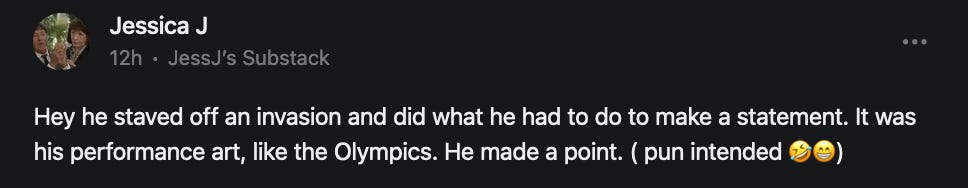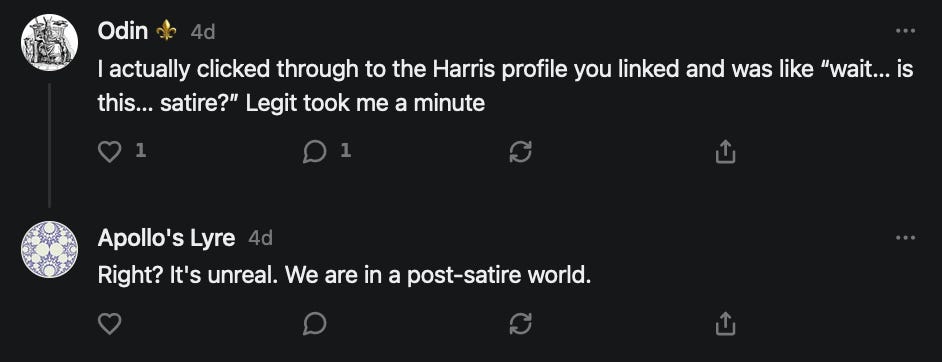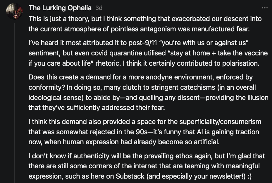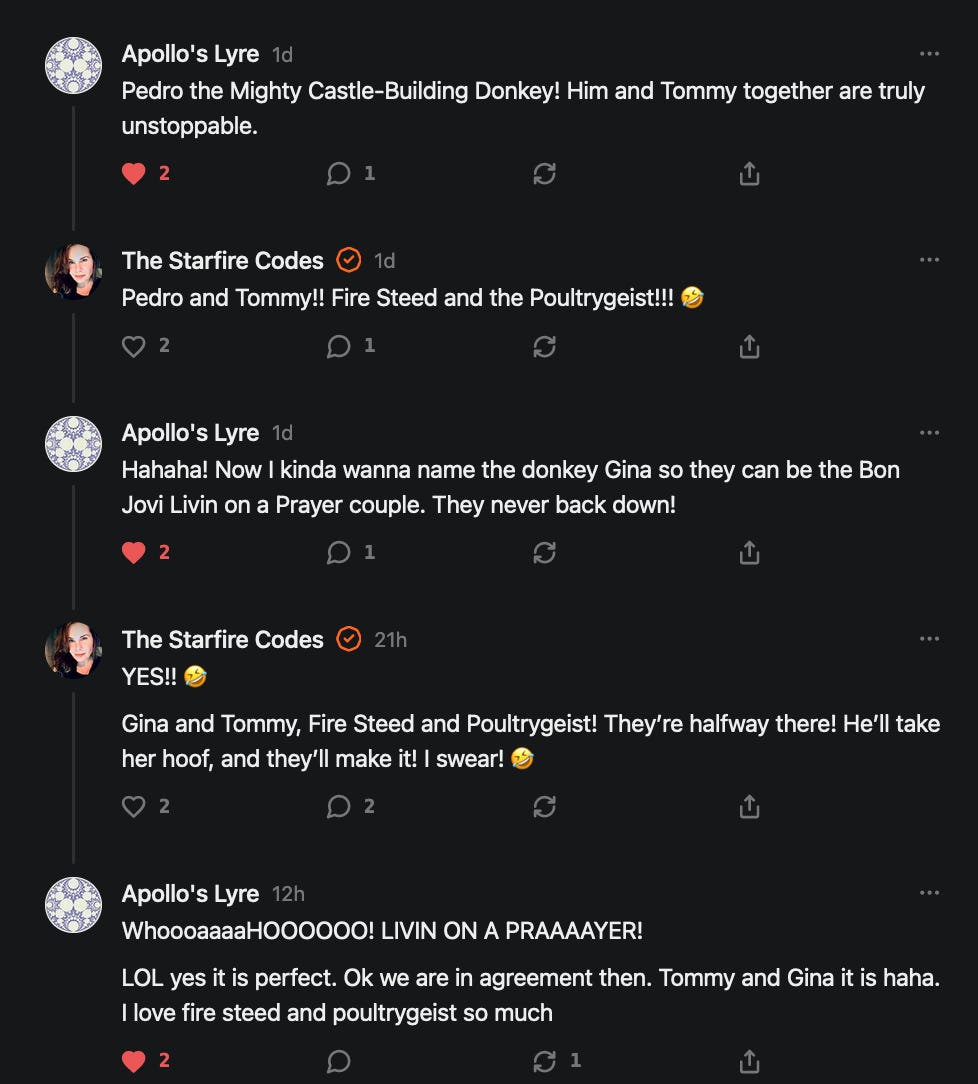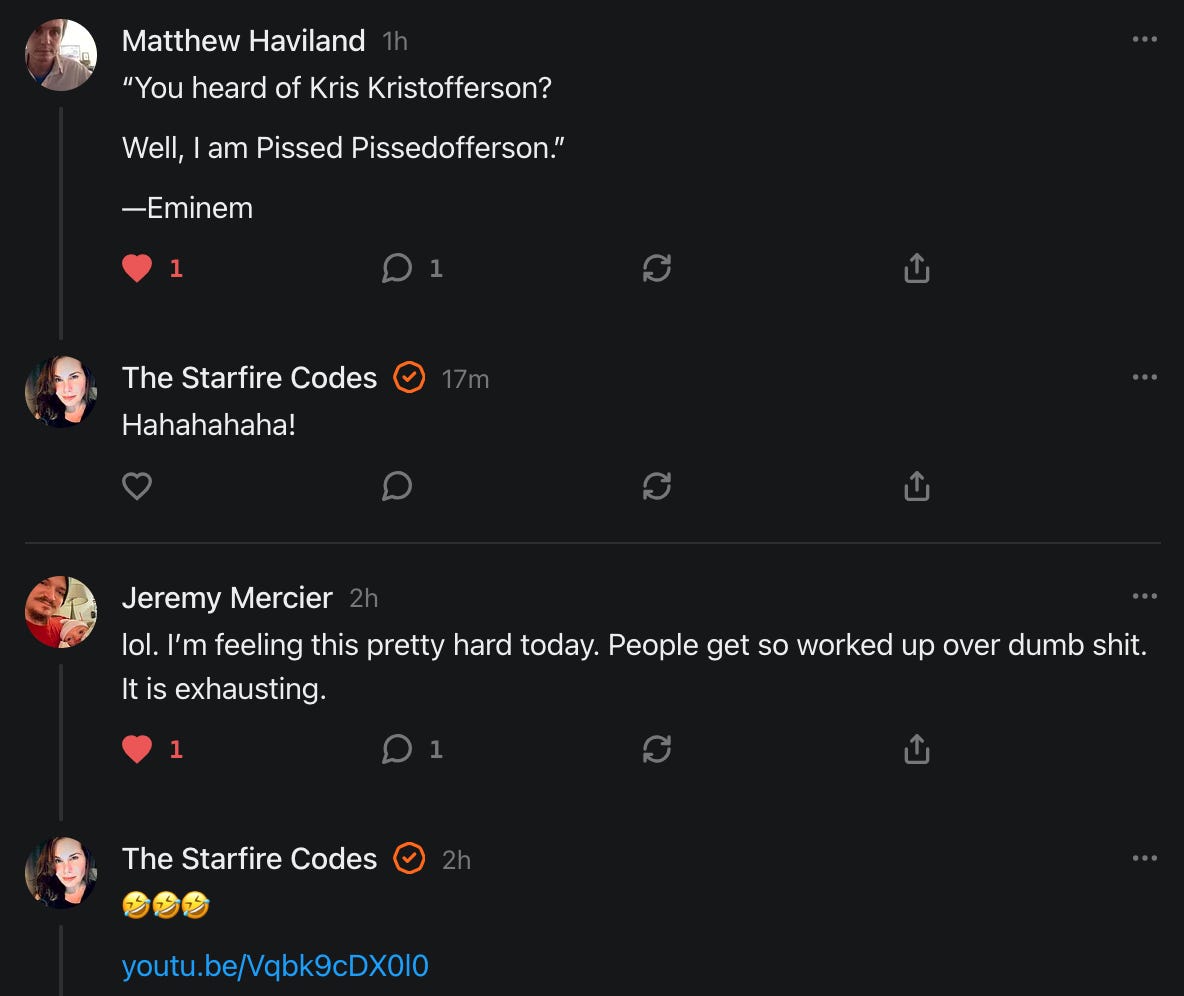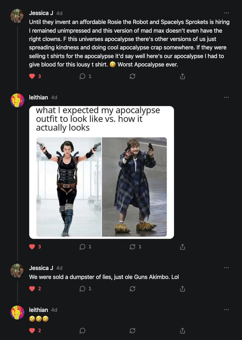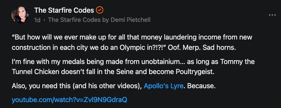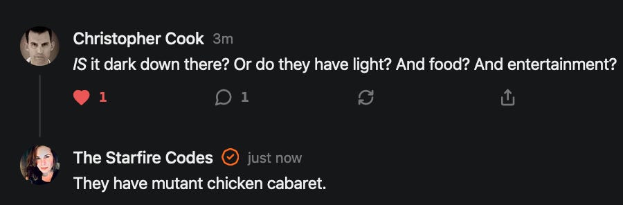 Special thanks to 13/1 NYS CONstitution, Aaron Waddell, Abigail Starke, Agnes, Ahmed’s Stack of Subs, AJ, Alan Lovejoy, Alan Simpson, Al Ballesteros, Alexander Semenyuk, Alex de Carvalho, Alex Ilex, AlgoTradeAlert, AllAboutEve43, Allegories And Inquiries, Amel Figueroa Sanchez, American Dissident, AMP, Amusings, Andre Moss, Andrew, Andrew Beebe, Andrew | Dad Explains, Andy Barnes, Angela Morris, Annette kimball, Annie Mc, Annie Today And Tomorrow, Antila H. Belist, Apollo's Lyre, ArtemisForestFairy, A. Ship, Ash 1952, Atomic Statements, Barbara Wegner, Barry Eby, Bart Caruso, Bill, Bill Lacey, Bill Pocklington, Bill Rice, Jr., Björn Olof Elisson, Blessed Warrior Reina, Blue Ridge Barbarian, Bob, Bob Hannaford, Boflys, Braeden, Brett Dill, Brian Forkum, BugGoo, Cameron M. Bailey, Caroline Lindon, Cape Coral Tony, Carolina Uribe, Cat Krilov, Cherri Vieau, cholli, Chris Frick, Chris Hall, Christina Gerrard, Chris Youngblood, Cinder, Clee Images, Coco McShevitz, Coleman, Colin Elliott, Connecting The Dots, Contrary to Ordinary, Cori Bren, Cygnus X-1, DancingInAshes, Daniela Tatz, Daniel W. Marshall, Danway, Darius, Dave, Dave Graziano, Dave Kunzelman, Dave pearen, David Reed, Dawn Bernard, Deborah Clark, Deborah T. Hewitt, Dee Rambeau, Dennis T., Dennis Wilson, Dharma Rose, Dianne, Dissentious Skwrl, Doctor Kitt, Dog, DoG, Don, Dookie Boi LaCroix, Dorothy Unleashed, Dr.Who, Duchessa Lia, Duke1832, dwtruthwarrior, Edward E Campbell, El doctor, Elizabeth Kelsey, Elizabeth Neville, ElRey_Congo, Elsie E Connelly, Emily, Emily M, Eric Brown, Eric Coppala, Erik Hogan, Fil666, Fizzy, FOOL, Forest Myers, Frank Barone, Fukitol, Gabriel, Geno Merryman, Germaine Lambergs, Gilgamech, Ginger Cook, GO, Grand Moff Porkins, Grand Schemes, Greg Snow, G. T. A. Ogle, Guy S. Waltman, HamburgerToday, Hannah Francesca, Hannahlore Trickett, Hannah Rose Williams, Heather B, Hege Kristoffersen, HFO (thepixieminx), Holly, Hugh Mercer, i3utm, Iam Weare, Ian, Ian Michael Lessard, IPR with Mack Morris, Iseeit, Jace, Jack, Jack Backes, Jackie J, Jackieone, Jacob Clarke, Jacqueline Rendell, Jake Purvis, James Costello, James Kirira, James True, Jane, Jason, Jen Goldman, M.A, Jenn, Jeremy Mercier, Jerome Armstrong, Jessica J, Jim Davidson, JM, Joe Bulls, Joel, Joel S Turrentine, Joe Reiter, John, John Mistretta, Johnny J. Johnson Jr. Esq., John Seaman, Johnstone75, Jonathan Fletcher, Jonathon, Joseph Hex, Joseph Montenegro, Joseph Saltzar, Josh Slocum, Joshua T Calkins-Treworgy, Joyce, JP Spatzier, JRCCreasey, J.S. Kasimir, Judson Stacy Vereen, Julie Fowler BA MA FCIM, Jweli, Kalihi Valley Druid, Karen Lynch, Karen P, Kat, Katherine Blair, Kath Lauderdale, Katy Marriott, Kay, Kaya Marie, Kelly Knight, Ken Barber, Ken Macko, Kenneth R. Mintz, Kerry, Kevin Bass, Kevin kenneth koehnke, Kevin Nash, Keziah_Soj, Kobalevsky 42, Koshmarov, Kristi Hadix, KSBfx 2020, Kyle Kissinger (no relation), Lady Libidex, Laura K, Lee, leithian, Lerville, Lia, libertà, Librarian of Celaeno, Liz, Liz Zimmers, Louise Tozzi, Love, Lucianna Aislynn, M7reads, MacGuffin, Maggie, MaKenna Grace, Mana Satto, Marie Christina Nørgård, MariKate, Marilyn S, MargaritasattheMall, Mark Blanda, Mark McIntire, Mark Roemers, martha, Martin Lewis, Martinus, Mary Dee, Mason, Storyteller, Matthew, Matthew Haviland, Matthew Thompson, Matt Taibbi, Max Clark, Melissa Petrie, Merry Edwards, Michael Hermens, Michael Newberry, Michael Rader, Michael S. Alford, Michael Woudenberg, Michelle Lobdell, Miep, Mike Kay, Missives From The Quantum, mg, M Le Baron, Morgthorak the Undead, Mr Nobody, MRT’s Haircut, MuggsSpongedice, M. V.M. 718, Mystic William, Nancy Boyd, Nancye, Nancy G, Nani Lani, Nate Winchester, Nathalie Martinek PhD, Nelo, nESSie, NHNEC, Nikkinike, Noah Goldstein, None Of Your Business, NotaBot, NOT Today, Nurse Kristin, Obsidian Blackbird., Odin ⚜️, Over_by_art_Minnesota, overflowing ashtray, Özge, Paolo Peralta, Patrick Morton, Patrick Muindi, Pat Spano, Paula Lynn Hay, Paul Kirwin, Peg Forbes, Peregrinus, Peter Bullard, Phi Eridani, polistra, qangin, Queue the Revolution, Rachel Cheeney, Randy Lessley, RANDY O’TOOLE, Rascal Nick Of, Rat, Ray Butler, ReadingRainbow, Reuben Salsa, Richard Nielsen, Rick Spencer, ric leczel, Rob, Robbie Newport, Robert cates, Robert Caulkins, Rob Watkins, Roger, Rosemary B, Russell Gold, Ruth Dupre, Ruth H, Ryan Williams, Sally, Sam, Sandra Combs, Sarah C, Sarah Powell, Sasha Stone, Sasha V, Scott, Scott Halverson, Scott MacInnis, Scott Uhrmann, ScrewWorm, Sean, Selina Rifkin, s.e.t.h, Shannon, Sharon Wilson, Shauna K. Hunt, Sigma Jedi, Silver Bear, Silver Warrior, Simon Tanner, Singing in the Dark, Slogger, S Mooney, Snunya B. Inniss, Solarah, SpandX, Starr O'Hara, Star Sourcer, Stay Sane Substack, StClair Tweedie, Stella Bell, Stephanie, St. Ignatius, Stone Bryson, Sue Charles-Hendy, Suzanne, SVour, Tara, Terrence Gideon, Teuta Blackman, Thea, TheAbjectLesson, The Bone Writer, The Brothers Krynn, The Dissident in Us, The Ignorant Ninja, the long warred, The Lurking Ophelia, Theodore Atkinson, The Shadow Band, Timothy Andrew Staples/pop122, Tina Hancock, T.J. Hattor, Tom Slick, Tonioconni, Toobguy47, TPWSYL, Trevor England Q., trhinz, Trudi Nicola, Tyler Bledsoe, Unapologeticallyyourstruly, Uncouth Barbarian, Vance Gatlin, Van Ivey, Victory Palace, Vulkan, Waylon, William Hunter Duncan, Your Friend Dave, and Zenitheus for inspiring these responses and the subsequent posts and conversations.