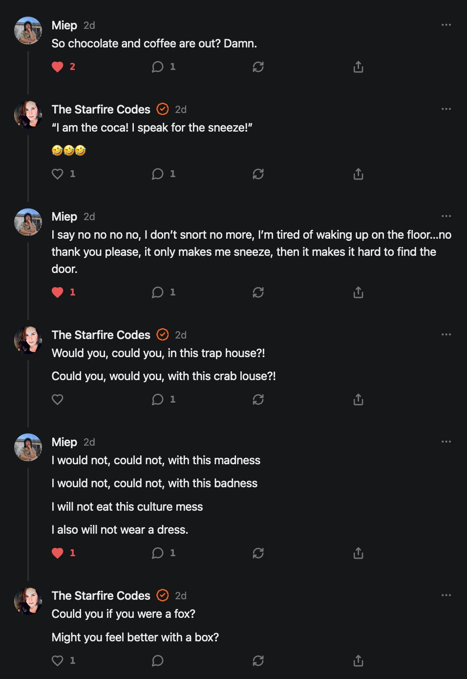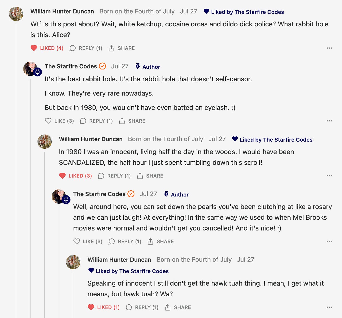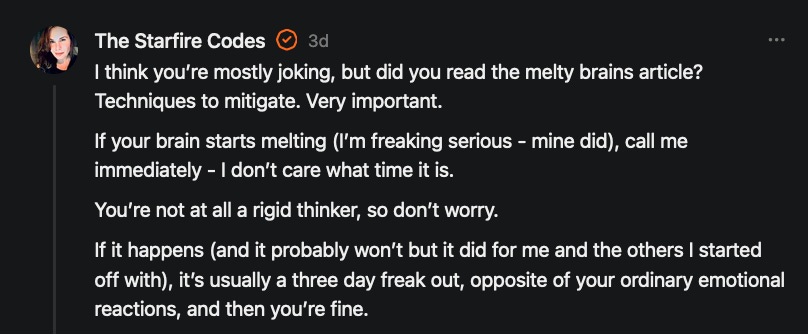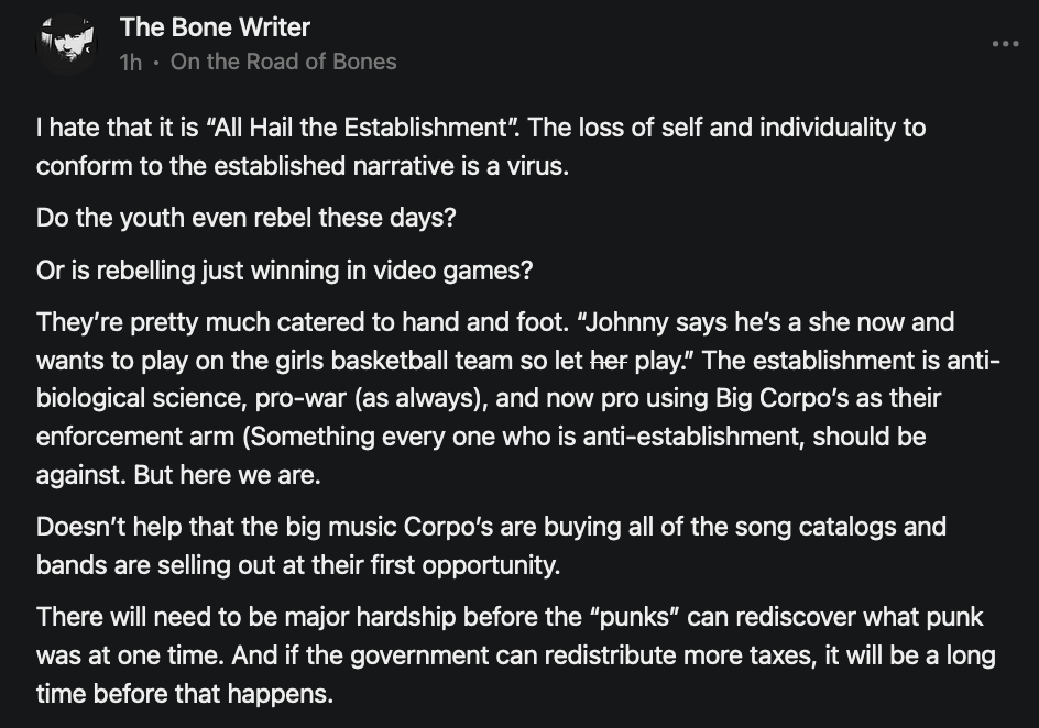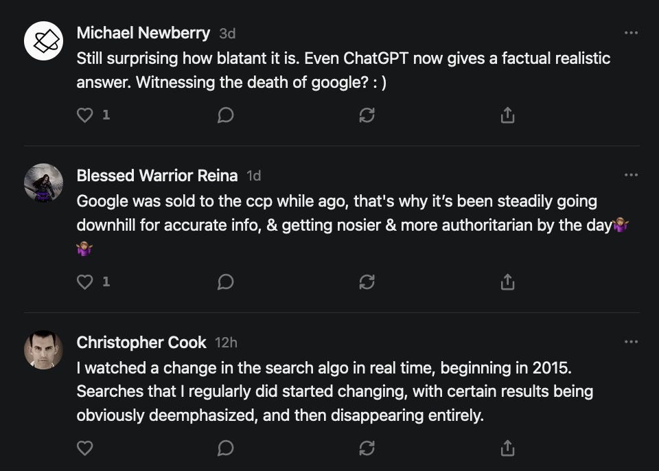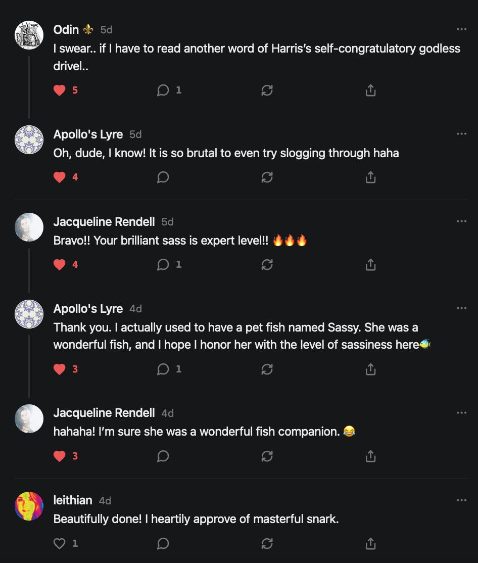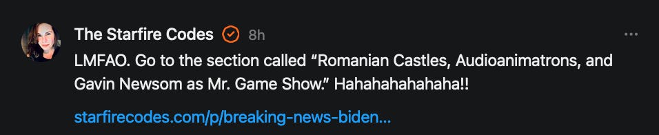 Special thanks to 13/1 NYS CONstitution, Aaron Waddell, Abigail Starke, Agnes, Ahmed’s Stack of Subs, AJ, Alan Lovejoy, Alan Simpson, Al Ballesteros, Alexander Semenyuk, Alex de Carvalho, Alex Ilex, AlgoTradeAlert, AllAboutEve43, Allegories And Inquiries, Amel Figueroa Sanchez, American Dissident, AMP, Amusings, Andre Moss, Andrew, Andrew Beebe, Andrew | Dad Explains, Andy Barnes, Angela Morris, Annette kimball, Annie Mc, Annie Today And Tomorrow, Antila H. Belist, Apollo's Lyre, ArtemisForestFairy, A. Ship, Ash 1952, Atomic Statements, Barbara Wegner, Barry Eby, Bart Caruso, Bill, Bill Lacey, Bill Pocklington, Bill Rice, Jr., Björn Olof Elisson, Blessed Warrior Reina, Blue Ridge Barbarian, Bob, Bob Hannaford, Boflys, Braeden, Brett Dill, Brian Forkum, BugGoo, Cameron M. Bailey, Caroline Lindon, Cape Coral Tony, Carolina Uribe, Cat Krilov, Cherri Vieau, cholli, Chris Frick, Chris Hall, Christina Gerrard, Chris Youngblood, Cinder, Clee Images, Coco McShevitz, Coleman, Colin Elliott, Connecting The Dots, Contrary to Ordinary, Cori Bren, Cygnus X-1, DancingInAshes, Daniela Tatz, Daniel W. Marshall, Danway, Darius, Dave, Dave Graziano, Dave Kunzelman, Dave pearen, David Reed, Dawn Bernard, Deborah Clark, Deborah T. Hewitt, Dee Rambeau, Dennis T., Dennis Wilson, Dharma Rose, Dianne, Dissentious Skwrl, Doctor Kitt, Dog, DoG, Don, Dookie Boi LaCroix, Dorothy Unleashed, Dr.Who, Duchessa Lia, Duke1832, dwtruthwarrior, Edward E Campbell, El doctor, Elizabeth Kelsey, Elizabeth Neville, ElRey_Congo, Elsie E Connelly, Emily, Emily M, Eric Brown, Eric Coppala, Erik Hogan, Fil666, Fizzy, FOOL, Forest Myers, Frank Barone, Fukitol, Gabriel, Geno Merryman, Germaine Lambergs, Gilgamech, Ginger Cook, GO, Grand Moff Porkins, Grand Schemes, Greg Snow, G. T. A. Ogle, Guy S. Waltman, HamburgerToday, Hannah Francesca, Hannahlore Trickett, Hannah Rose Williams, Heather B, Hege Kristoffersen, HFO (thepixieminx), Holly, Hugh Mercer, i3utm, Iam Weare, Ian, Ian Michael Lessard, IPR with Mack Morris, Iseeit, Jace, Jack, Jack Backes, Jackie J, Jackieone, Jacob Clarke, Jacqueline Rendell, Jake Purvis, James Costello, James Kirira, James True, Jane, Jason, Jen Goldman, M.A, Jenn, Jeremy Mercier, Jerome Armstrong, Jessica J, Jim Davidson, JM, Joe Bulls, Joel, Joel S Turrentine, Joe Reiter, John, John Mistretta, Johnny J. Johnson Jr. Esq., John Seaman, Johnstone75, Jonathan Fletcher, Jonathon, Joseph Hex, Joseph Montenegro, Joseph Saltzar, Josh Slocum, Joshua T Calkins-Treworgy, Joyce, JP Spatzier, JRCCreasey, J.S. Kasimir, Judson Stacy Vereen, Julie Fowler BA MA FCIM, Jweli, Kalihi Valley Druid, Karen Lynch, Karen P, Kat, Katherine Blair, Kath Lauderdale, Katy Marriott, Kay, Kaya Marie, Kelly Knight, Ken Barber, Ken Macko, Kenneth R. Mintz, Kerry, Kevin Bass, Kevin kenneth koehnke, Kevin Nash, Keziah_Soj, Kobalevsky 42, Koshmarov, Kristi Hadix, KSBfx 2020, Kyle Kissinger (no relation), Lady Libidex, Laura K, Lee, leithian, Lerville, Lia, libertà, Librarian of Celaeno, Liz, Liz Zimmers, Louise Tozzi, Love, Lucianna Aislynn, M7reads, MacGuffin, Maggie, MaKenna Grace, Mana Satto, Marie Christina Nørgård, MariKate, Marilyn S, MargaritasattheMall, Mark Blanda, Mark McIntire, Mark Roemers, martha, Martin Lewis, Martinus, Mary Dee, Mason, Storyteller, Matthew, Matthew Haviland, Matthew Thompson, Matt Taibbi, Max Clark, Melissa Petrie, Merry Edwards, Michael Hermens, Michael Newberry, Michael Rader, Michael S. Alford, Michael Woudenberg, Michelle Lobdell, Miep, Mike Kay, Missives From The Quantum, mg, M Le Baron, Morgthorak the Undead, Mr Nobody, MRT’s Haircut, MuggsSpongedice, M. V.M. 718, Mystic William, Nancy Boyd, Nancye, Nancy G, Nani Lani, Nate Winchester, Nathalie Martinek PhD, Nelo, nESSie, NHNEC, Nikkinike, Noah Goldstein, None Of Your Business, NotaBot, NOT Today, Nurse Kristin, Obsidian Blackbird., Odin ⚜️, Over_by_art_Minnesota, overflowing ashtray, Özge, Paolo Peralta, Patrick Morton, Patrick Muindi, Pat Spano, Paula Lynn Hay, Paul Kirwin, Peg Forbes, Peregrinus, Peter Bullard, Phi Eridani, polistra, qangin, Queue the Revolution, Rachel Cheeney, Randy Lessley, RANDY O’TOOLE, Rascal Nick Of, Rat, Ray Butler, ReadingRainbow, Reuben Salsa, Richard Nielsen, Rick Spencer, ric leczel, Rob, Robbie Newport, Robert cates, Robert Caulkins, Rob Watkins, Roger, Rosemary B, Russell Gold, Ruth Dupre, Ruth H, Ryan Williams, Sally, Sam, Sandra Combs, Sarah C, Sarah Powell, Sasha Stone, Sasha V, Scott, Scott Halverson, Scott MacInnis, Scott Uhrmann, ScrewWorm, Sean, Selina Rifkin, s.e.t.h, Shannon, Sharon Wilson, Shauna K. Hunt, Sigma Jedi, Silver Bear, Silver Warrior, Simon Tanner, Singing in the Dark, Slogger, S Mooney, Snunya B. Inniss, Solarah, SpandX, Starr O'Hara, Star Sourcer, Stay Sane Substack, StClair Tweedie, Stella Bell, Stephanie, St. Ignatius, Stone Bryson, Sue Charles-Hendy, Suzanne, SVour, Tara, Terrence Gideon, Teuta Blackman, Thea, TheAbjectLesson, The Bone Writer, The Brothers Krynn, The Dissident in Us, The Ignorant Ninja, the long warred, The Lurking Ophelia, Theodore Atkinson, The Shadow Band, Timothy Andrew Staples/pop122, Tina Hancock, T.J. Hattor, Tom Slick, Tonioconni, Toobguy47, TPWSYL, Trevor England Q., trhinz, Trudi Nicola, Tyler Bledsoe, Unapologeticallyyourstruly, Uncouth Barbarian, Vance Gatlin, Van Ivey, Victory Palace, Vulkan, Waylon, William Hunter Duncan, Your Friend Dave, and Zenitheus for inspiring these responses and the subsequent posts and conversations.