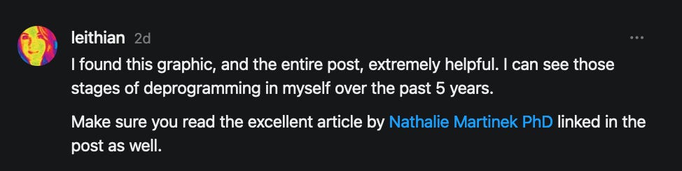 [In response to “This is not an exhaustive list but writing this list is exhausting. It’s exhausting because it reflects binary thinking about a world that is nuanced and complex. As I was going through this list it seemed like I was reading a cult’s manifesto: if you do what is expected of you, you will be saved and attain enlightenment. You’re either with us or against us.” - Nathalie Martinek PhD, Some mental models won't save the world (including the one that the world needs saving)]